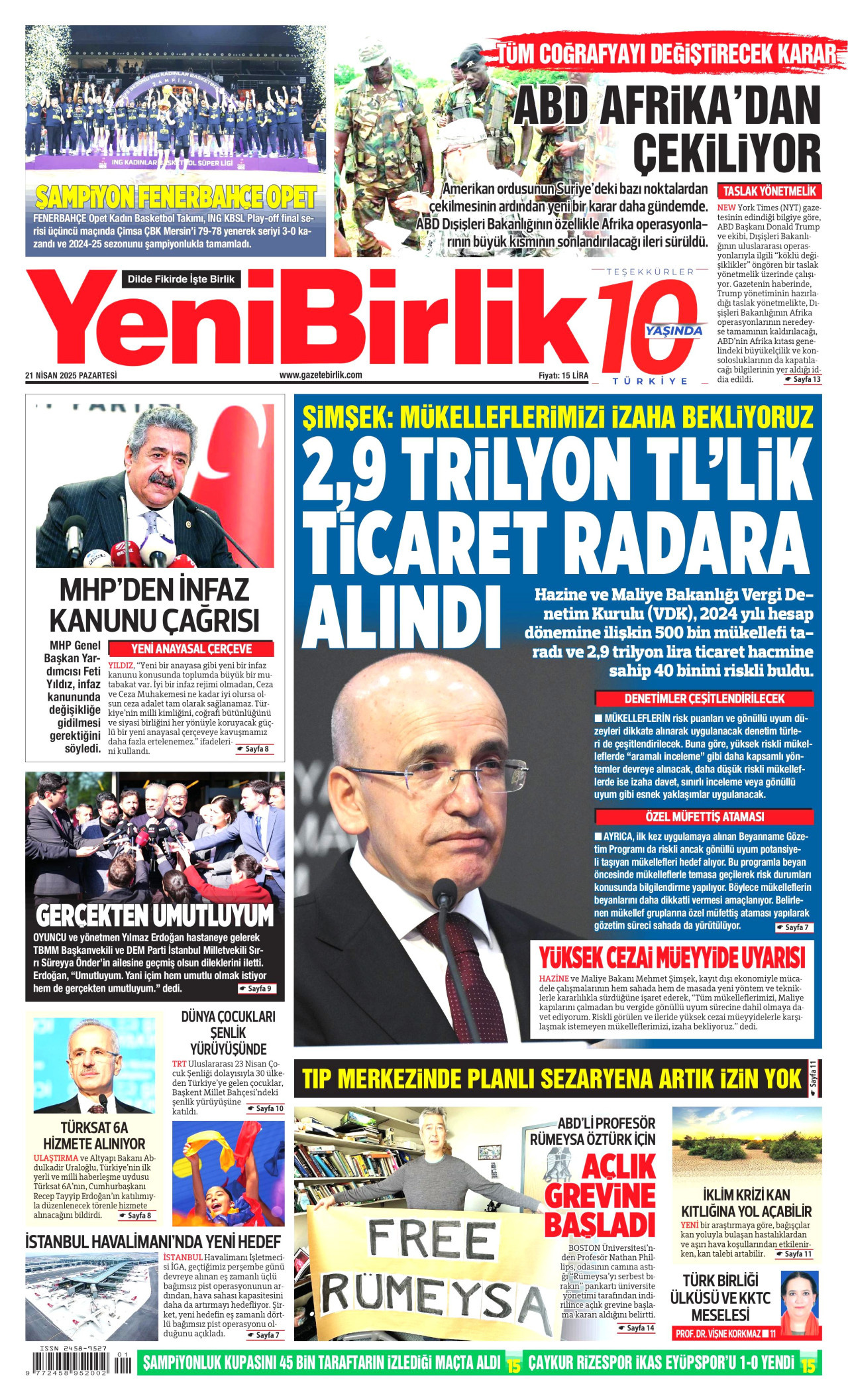 Yeni Birlik Gazetesi | 21 Nisan 2025