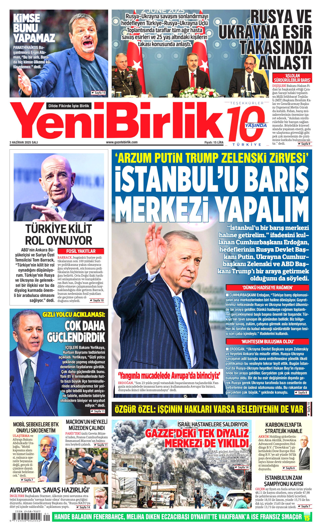 Yeni Birlik Gazetesi | 3 Haziran 2025