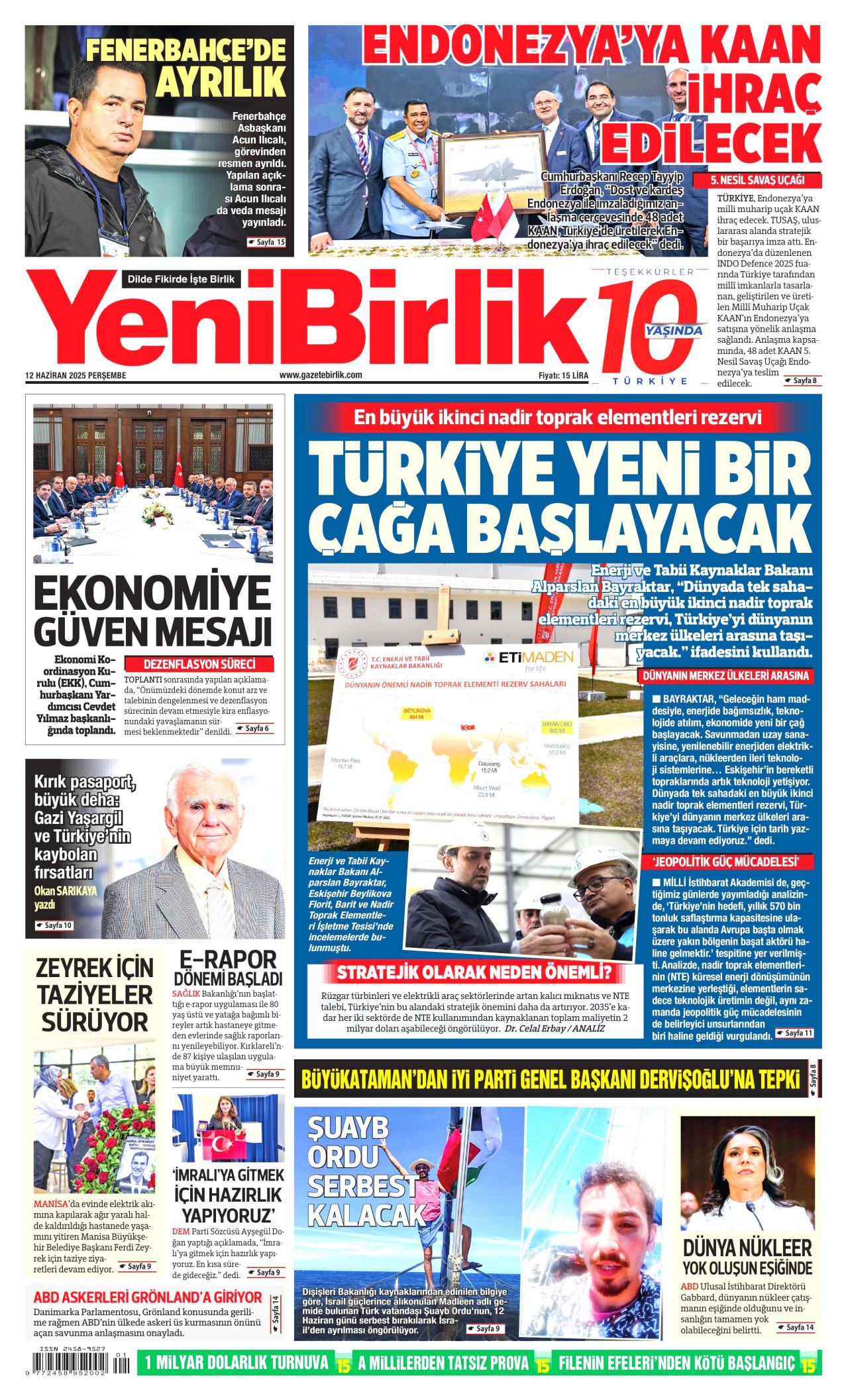 Yeni Birlik Gazetesi | 12 Haziran 2025
