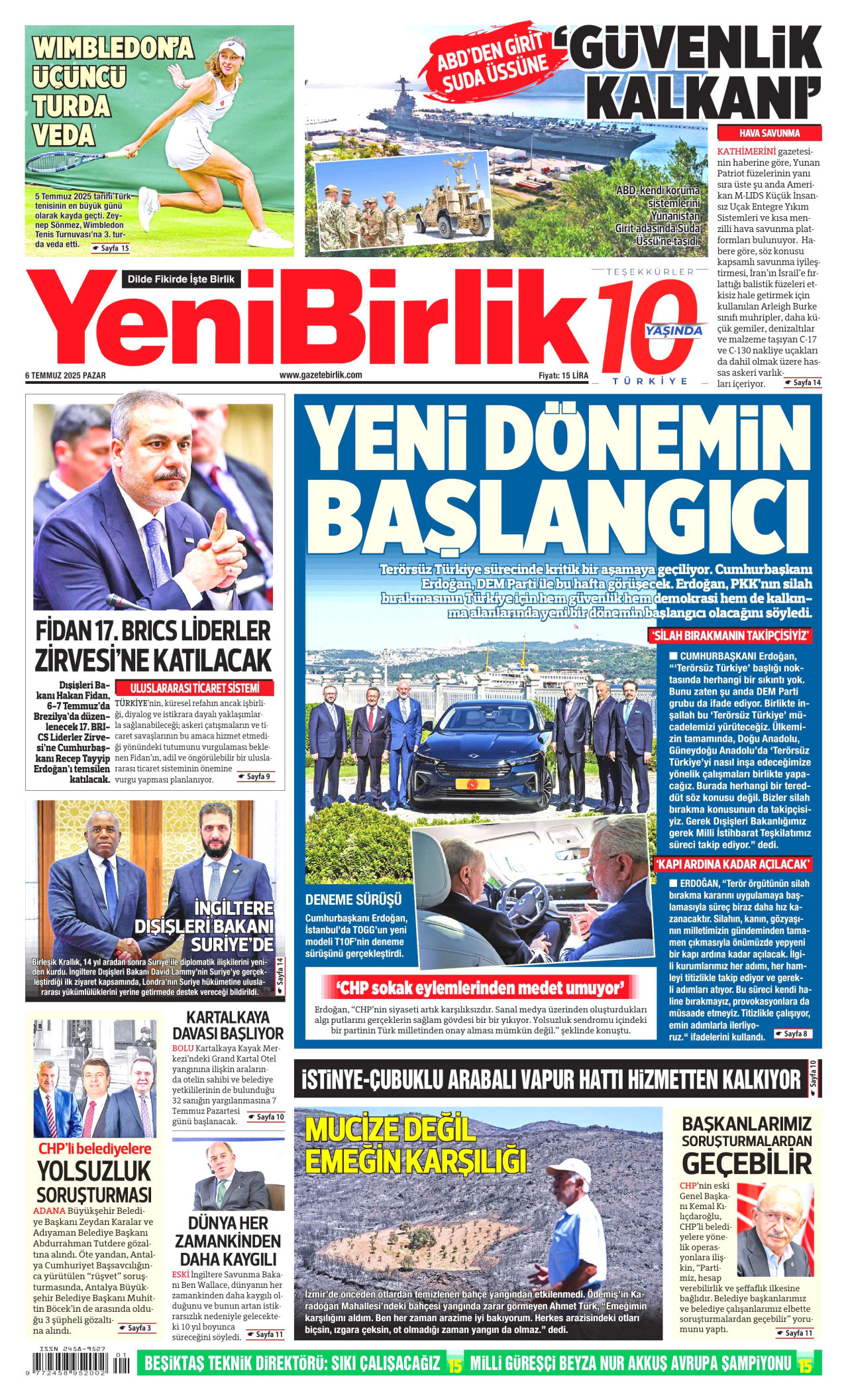 Yeni Birlik Gazetesi | 06 Temmuz 2025