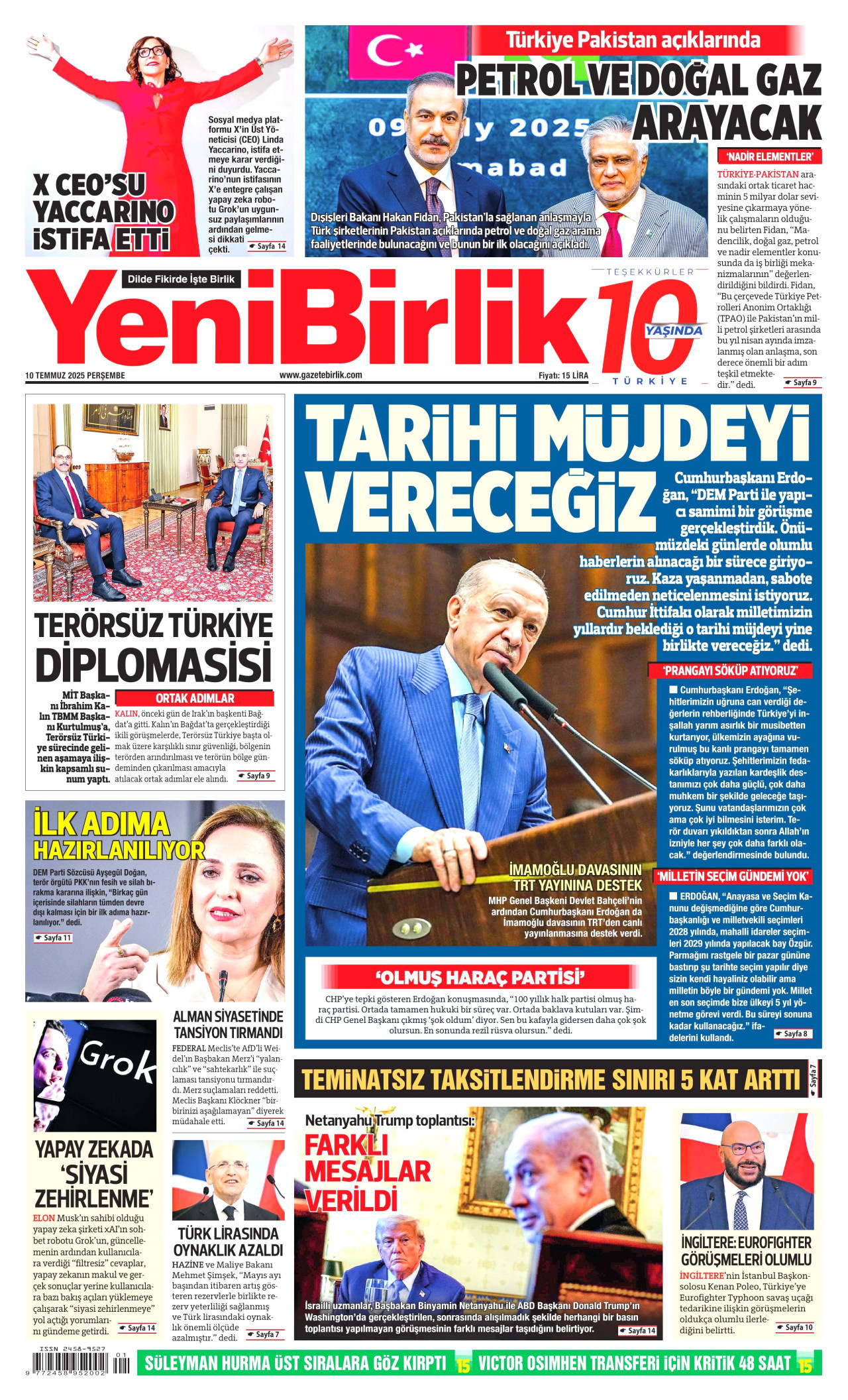 Yeni Birlik Gazetesi | 10 Temmuz 2025
