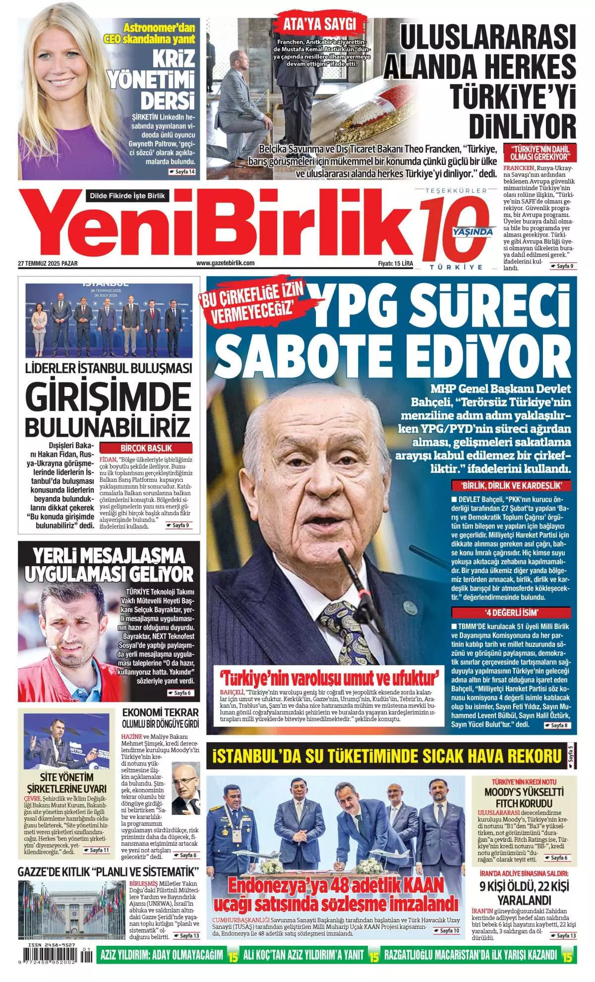 Yeni Birlik Gazetesi | 27 Temmuz 2025