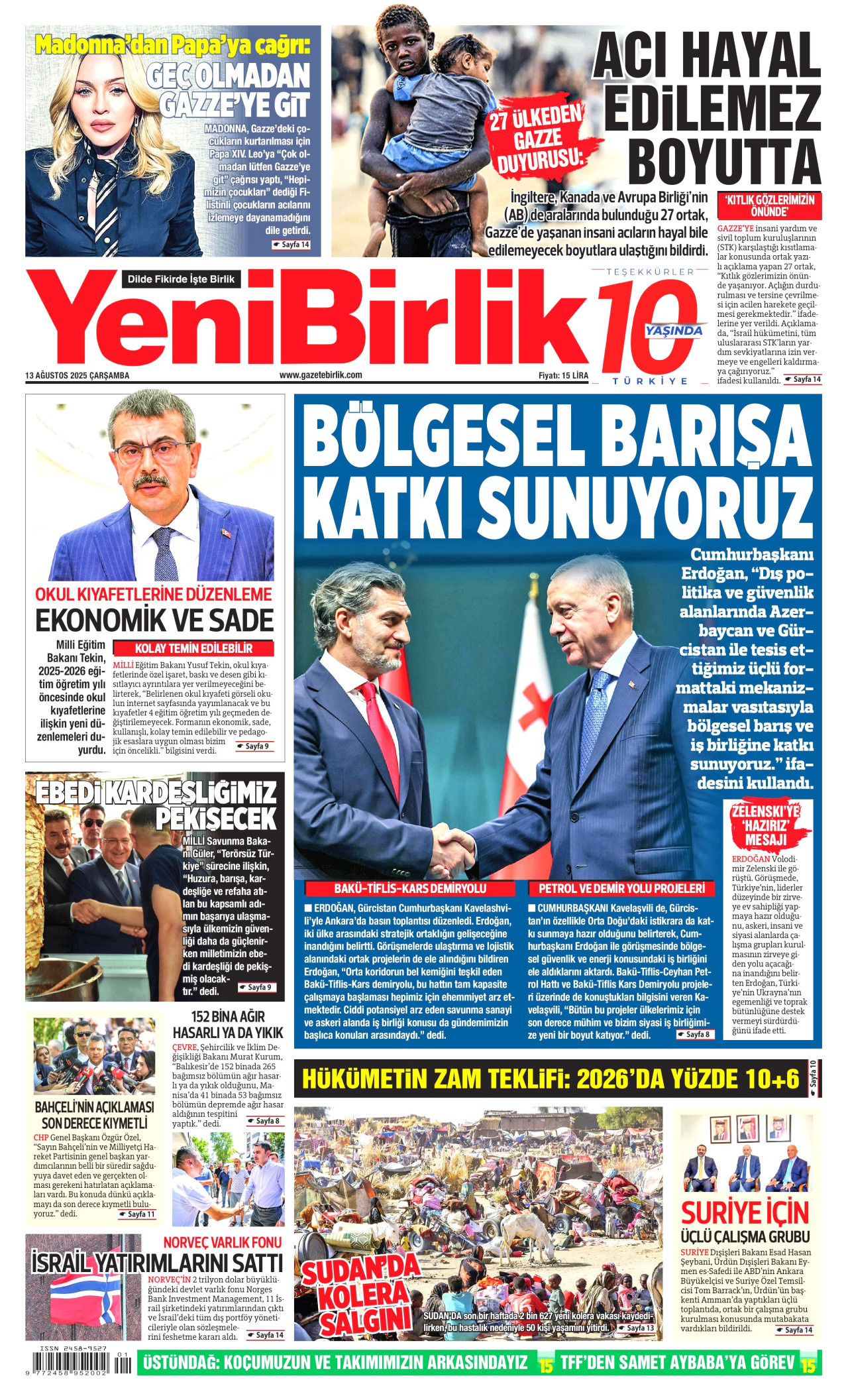 Yeni Birlik Gazetesi | 13 Ağustos 2025