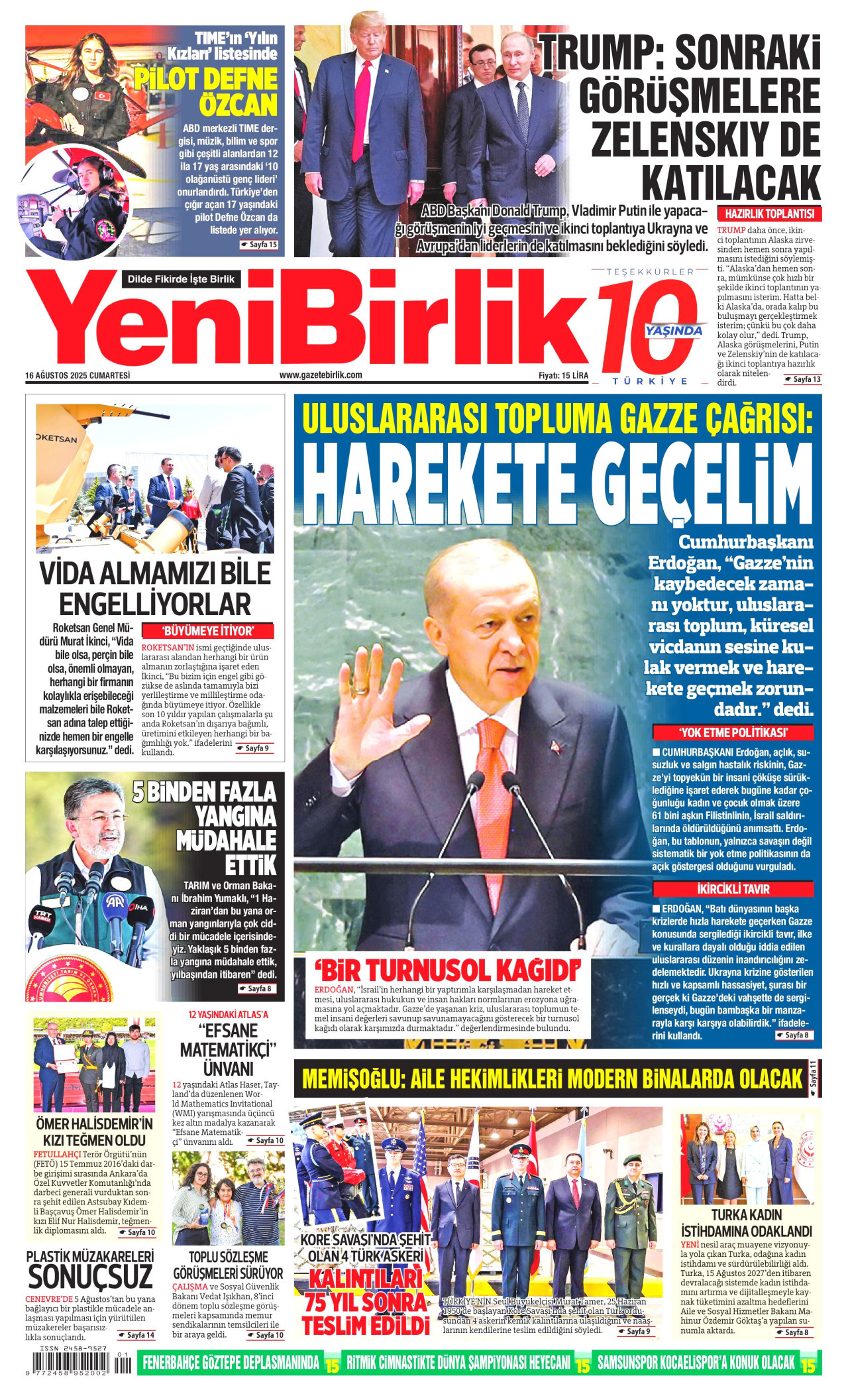 Yeni Birlik Gazetesi | 16 Ağustos 2025