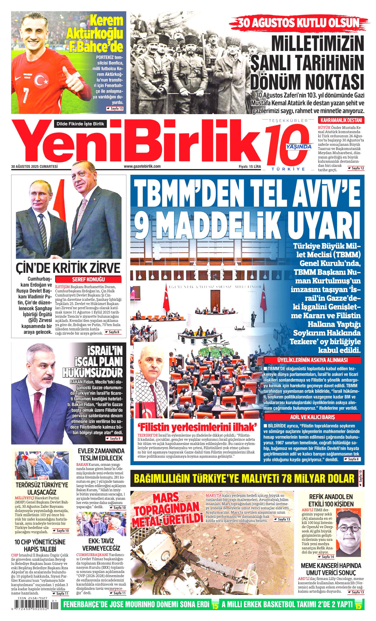 Yeni Birlik Gazetesi | 30 Ağustos 2025