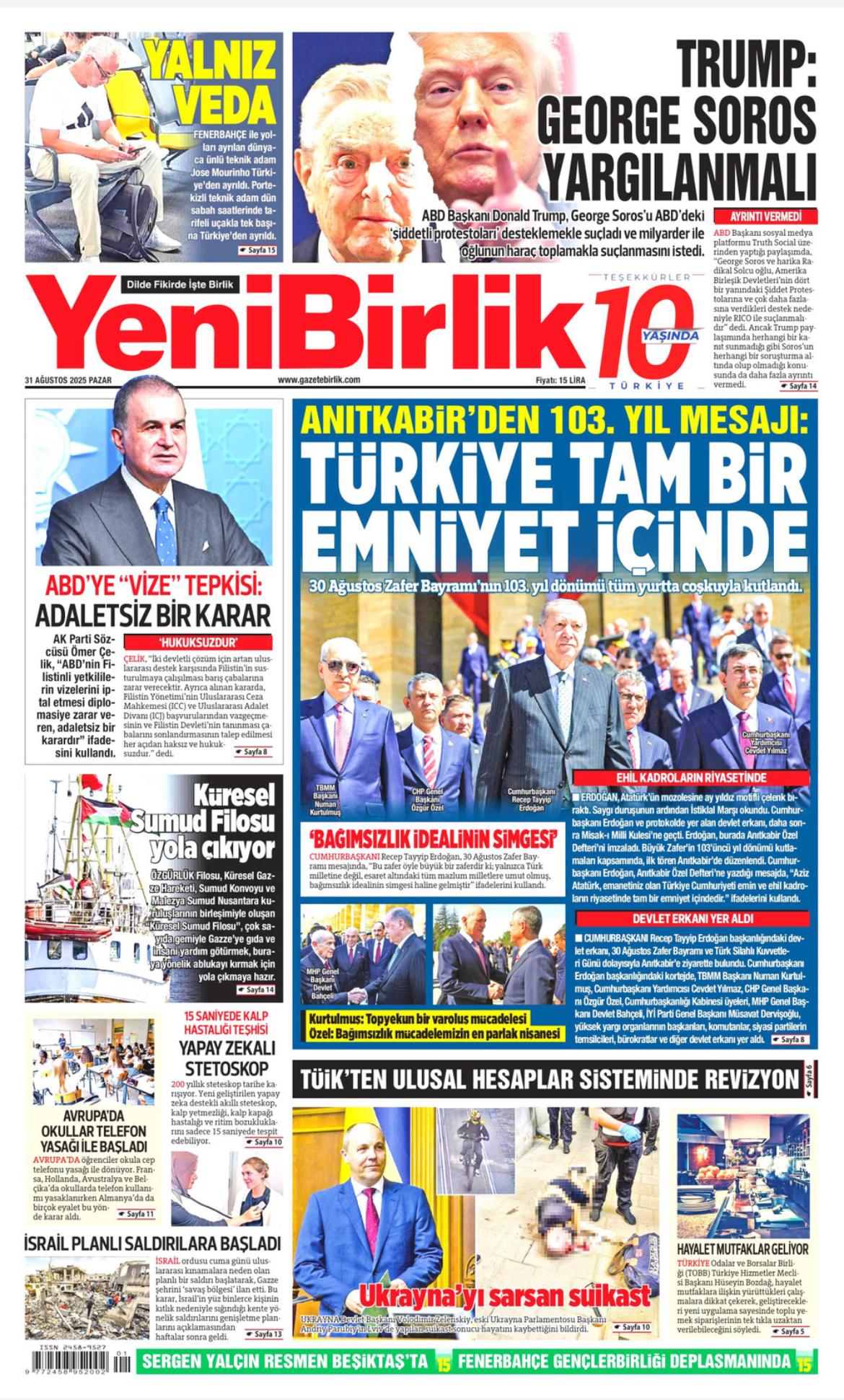 Yeni Birlik Gazetesi | 31 Ağustos 2025
