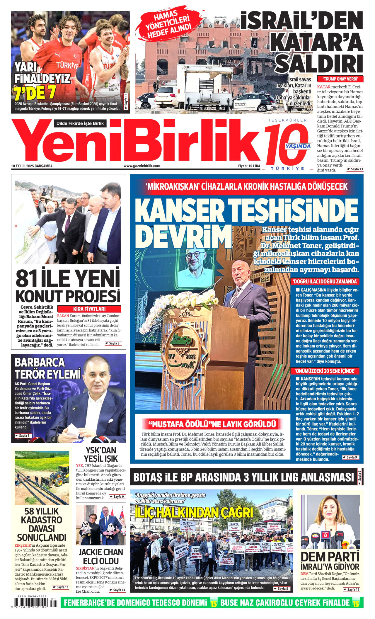 Yeni Birlik Gazetesi | 10 Eylül 2025