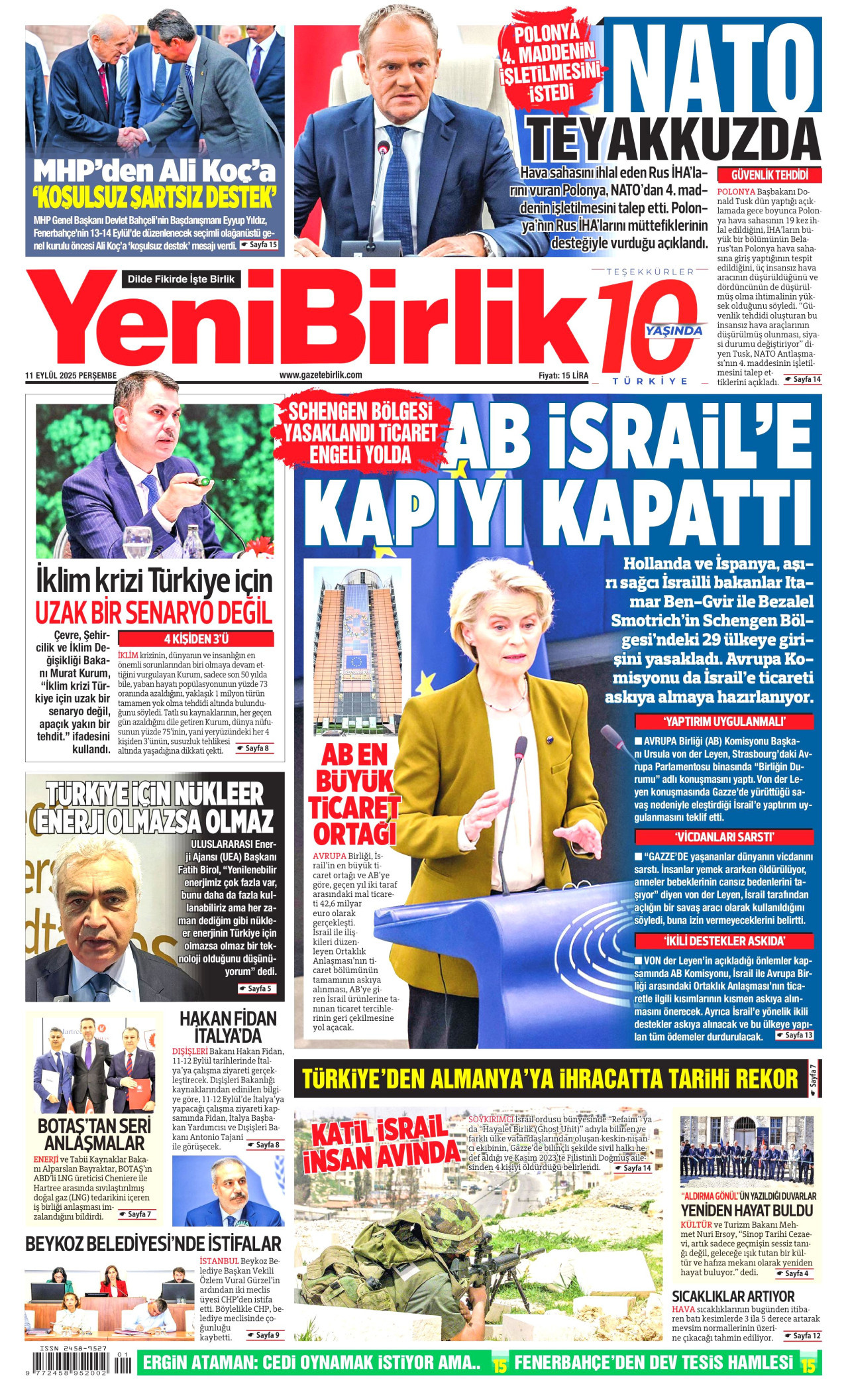 Yeni Birlik Gazetesi | 11 Eylül 2025