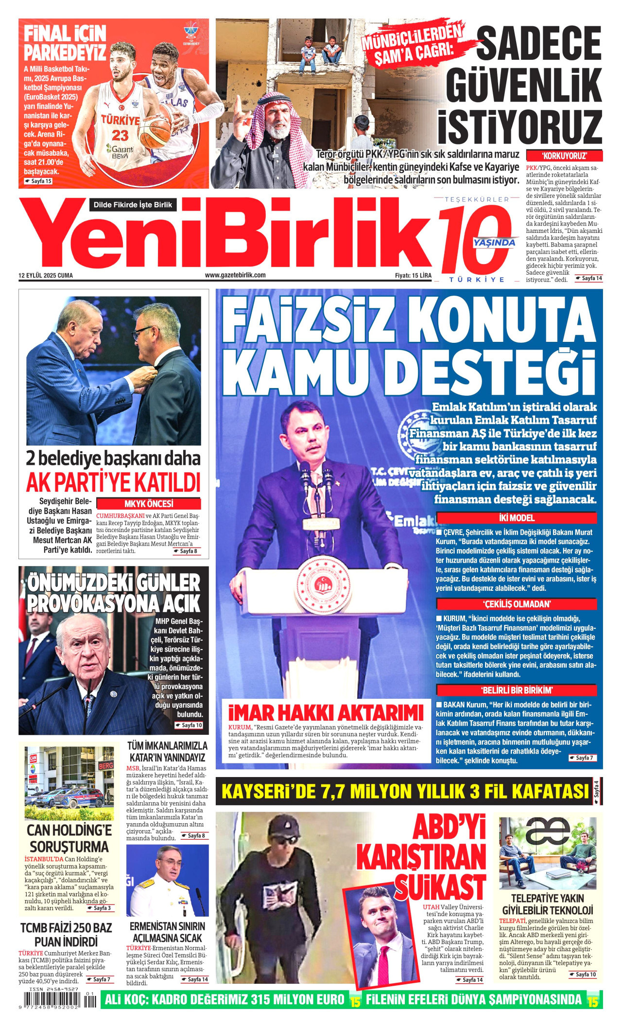 Yeni Birlik Gazetesi | 12 Eylül 2025