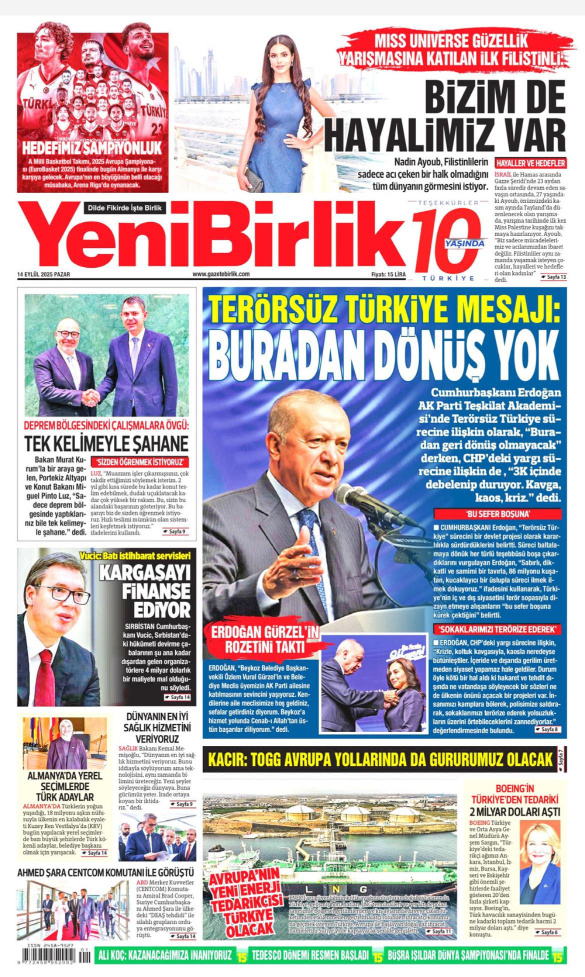 Yeni Birlik Gazetesi | 14 Eylül 2025