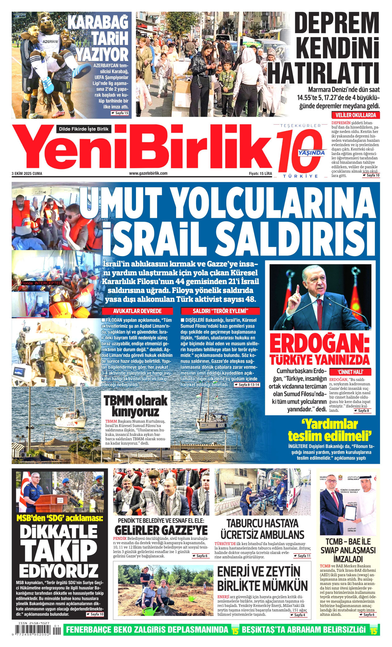 Yeni Birlik Gazetesi | 3 Ekim 2025