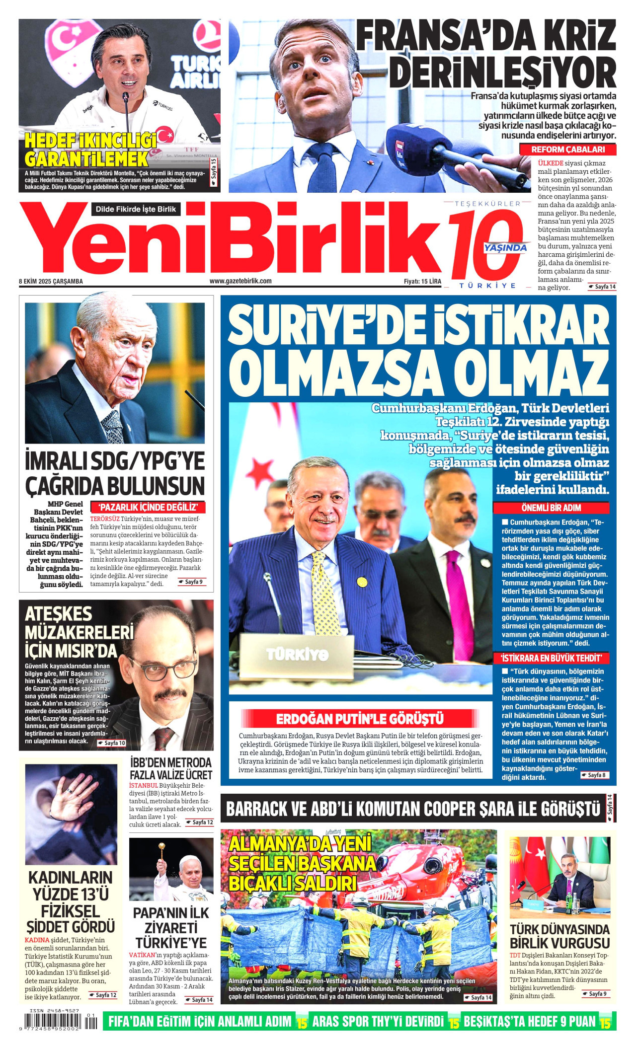 Yeni Birlik Gazetesi | 8 Ekim 2025