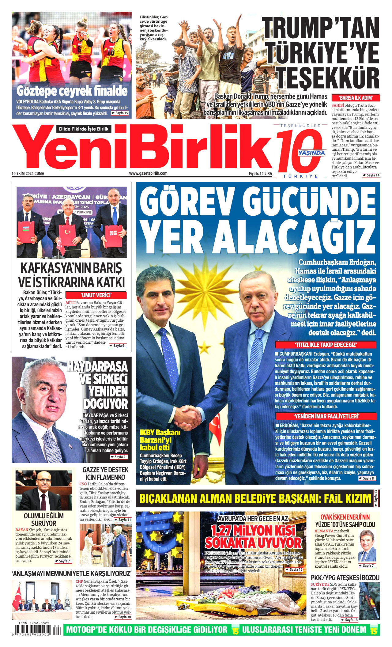 Yeni Birlik Gazetesi | 10 Ekim 2025