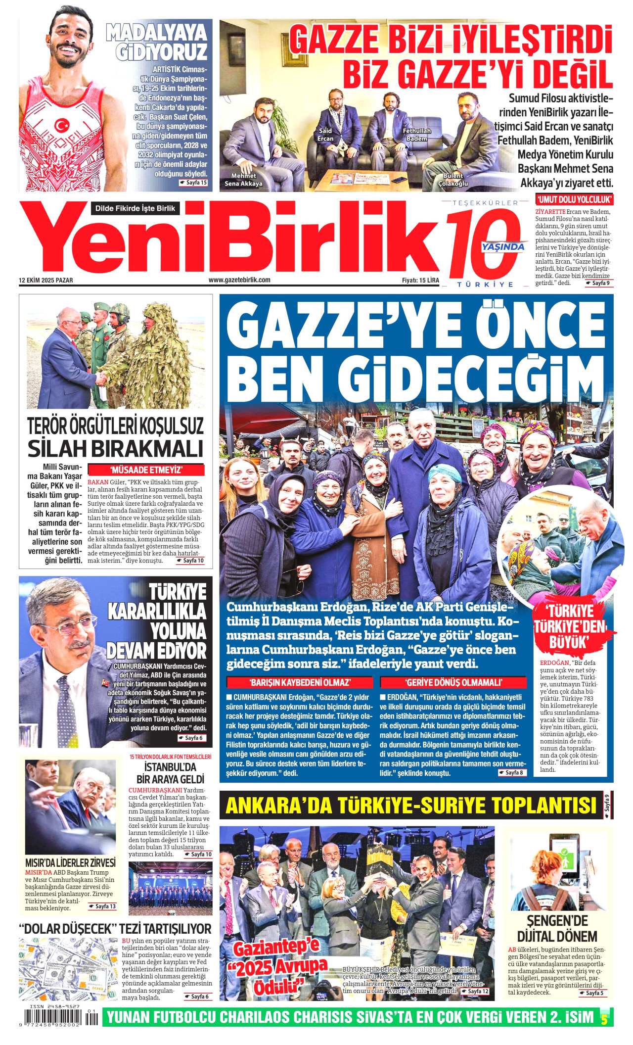 Yeni Birlik Gazetesi | 12 Ekim 2025