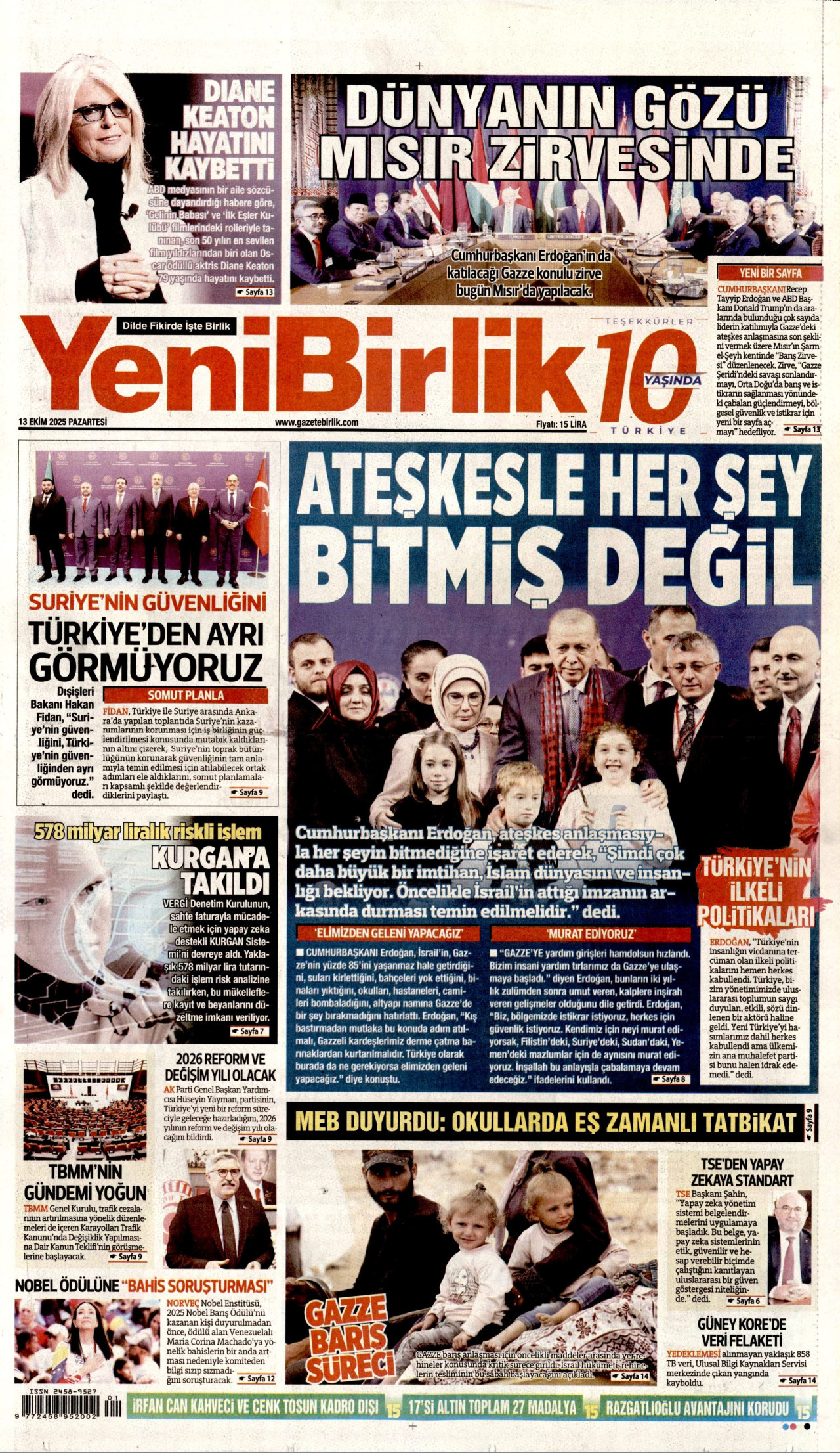 Yeni Birlik Gazetesi | 13 Ekim 2025