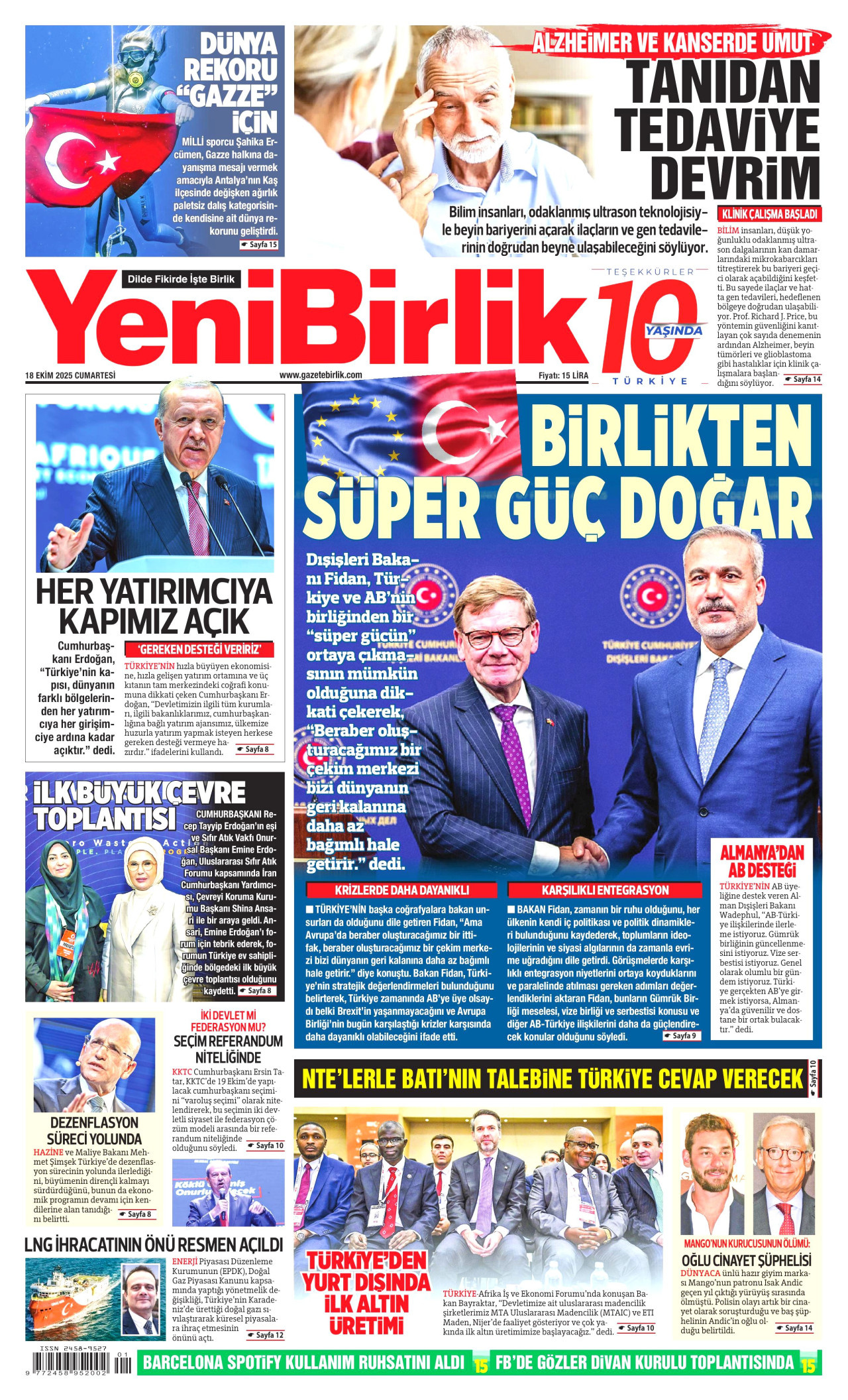 Yeni Birlik Gazetesi | 18 Ekim 2025