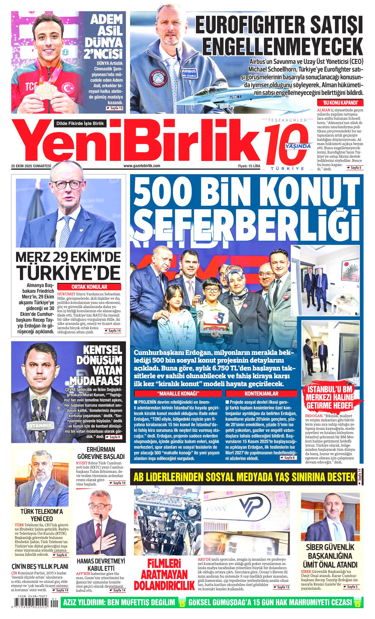 Yeni Birlik Gazetesi | 25 Ekim 2025