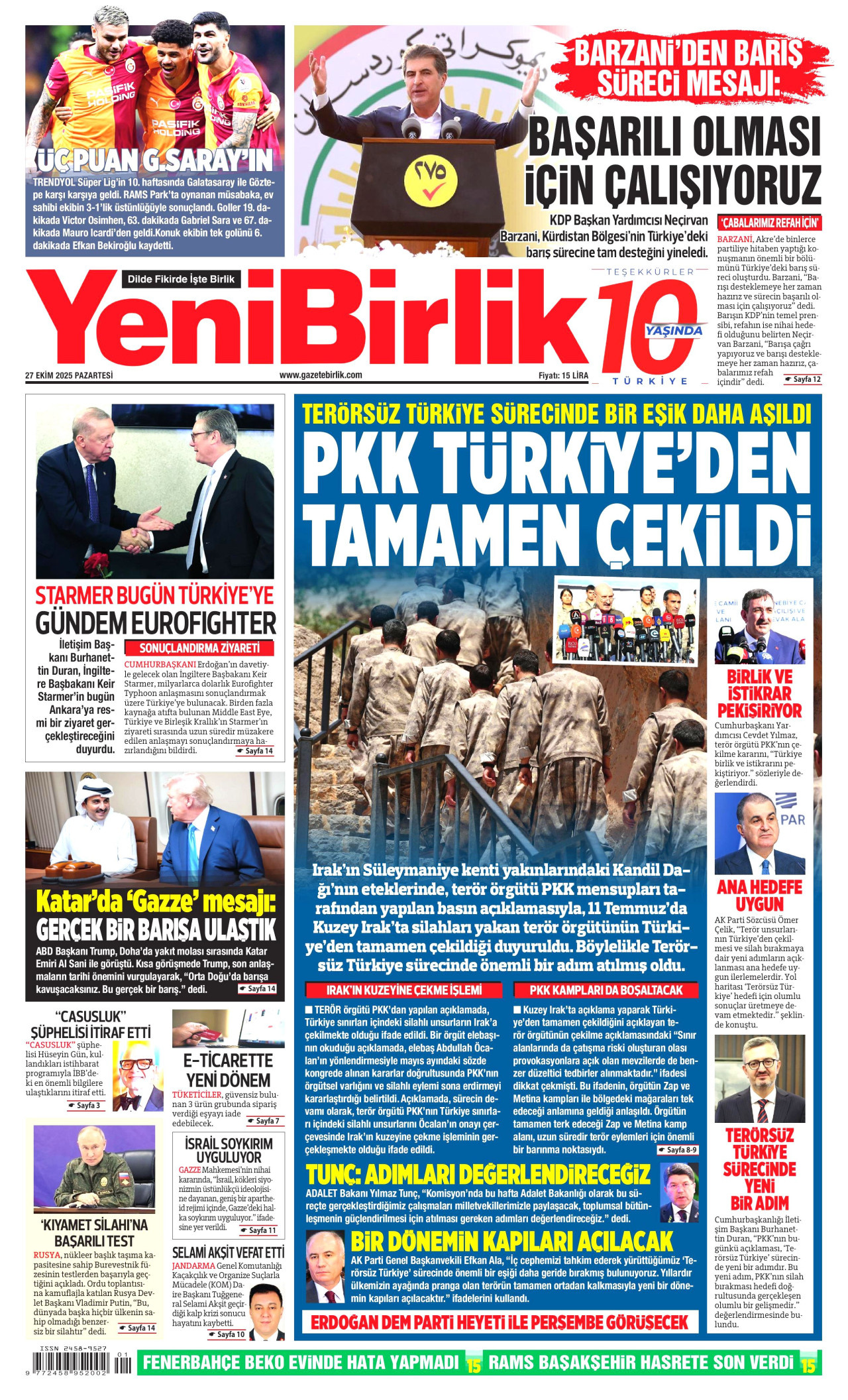 Yeni Birlik Gazetesi | 27 Ekim 2025