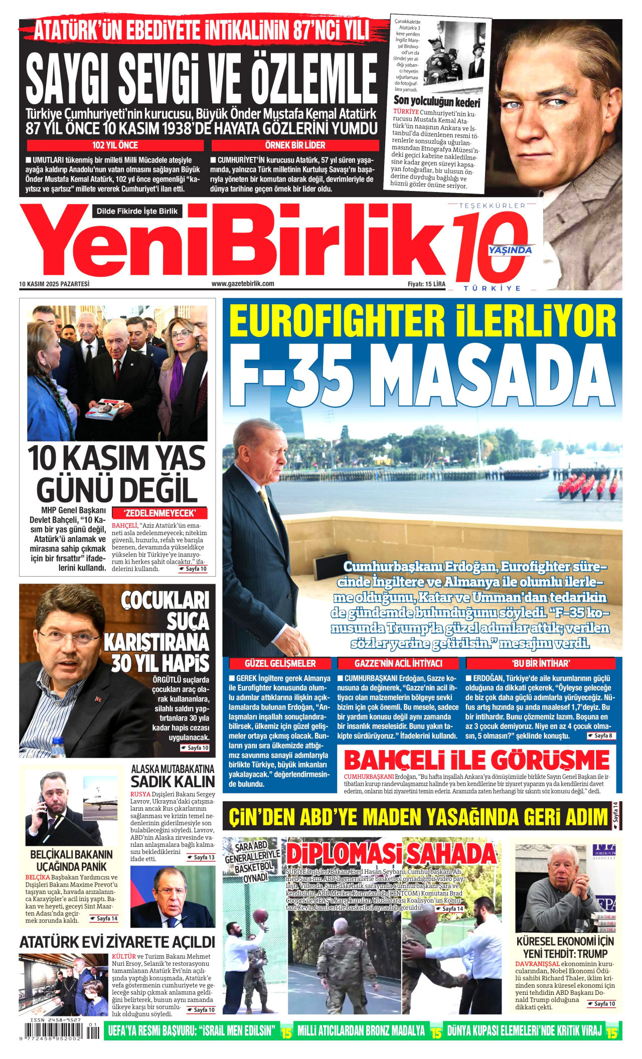 Yeni Birlik Gazetesi | 10 Kasım 2025