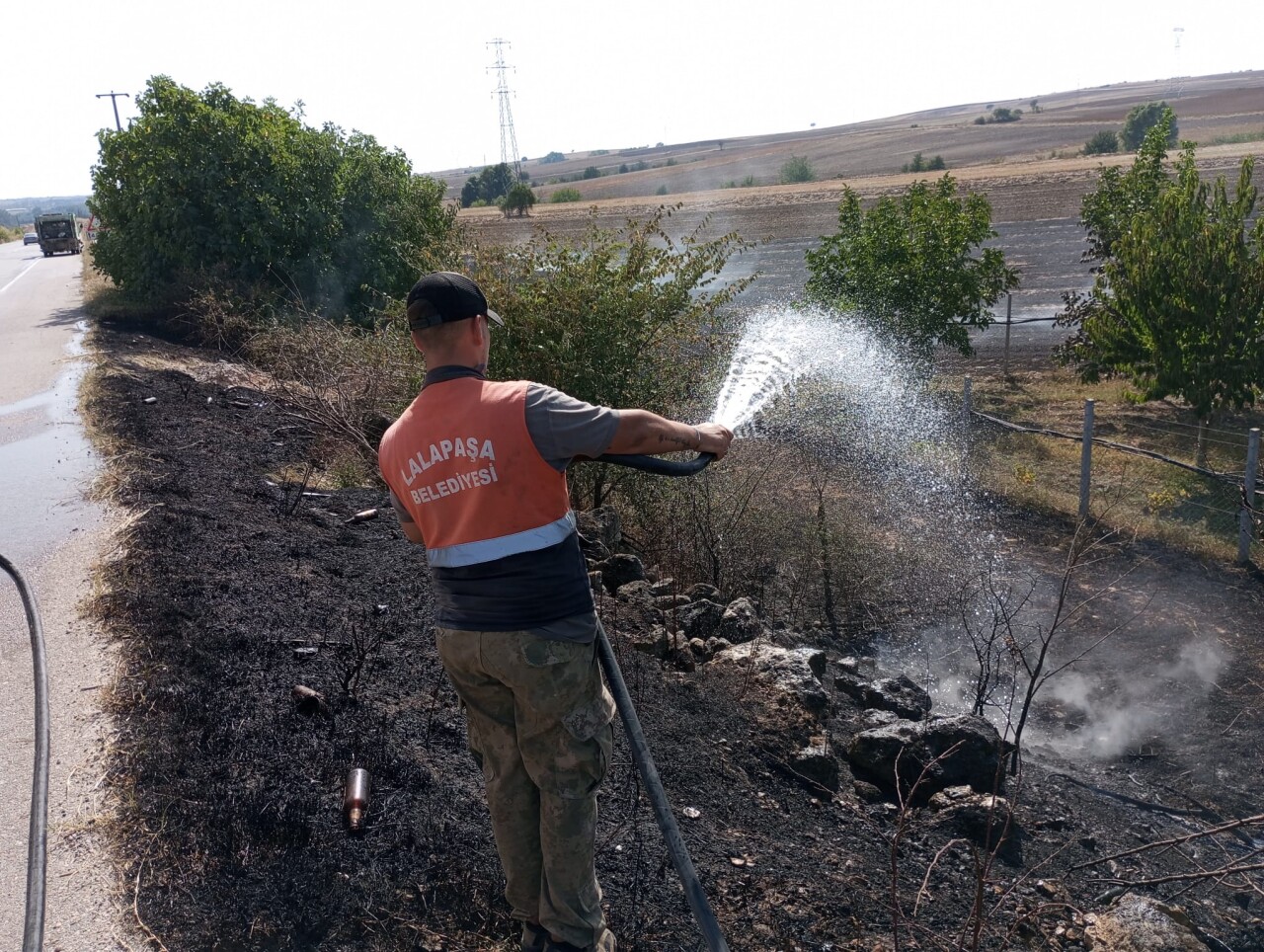 İhbar üzerine bölgeye Lalapaşa Belediyesi itfaiye ekipleri sevk edildi.