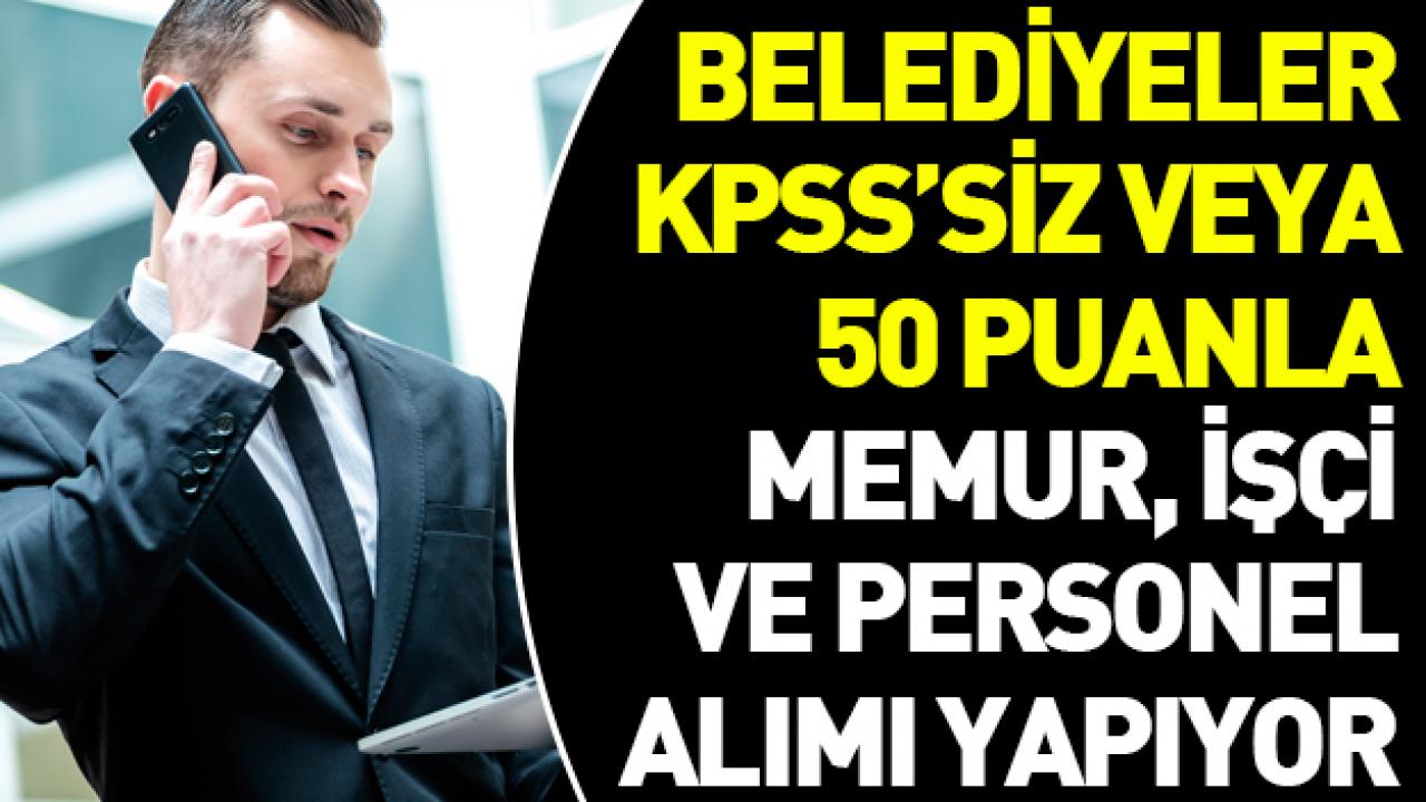 İlçelerin hizmetlerini sağlayan belediyelerde memur, personel ve işçi olarak çalışmak mümkün. Adaylar KPSS olmadan veya taban puan 50 üzerinden değerlendirme ile kadrolara alınabiliyor.