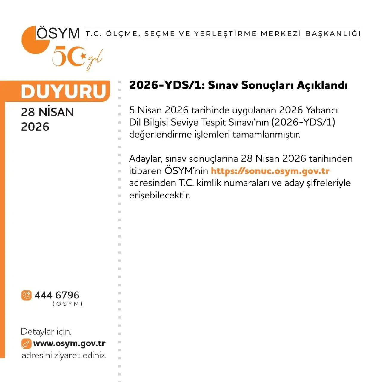Binlerce adayın ter döktüğü 2026-YDS/1 sınavının değerlendirme süreci nihayete erdi; adaylar artık puanlarını sistem üzerinden görüntüleyebiliyor.