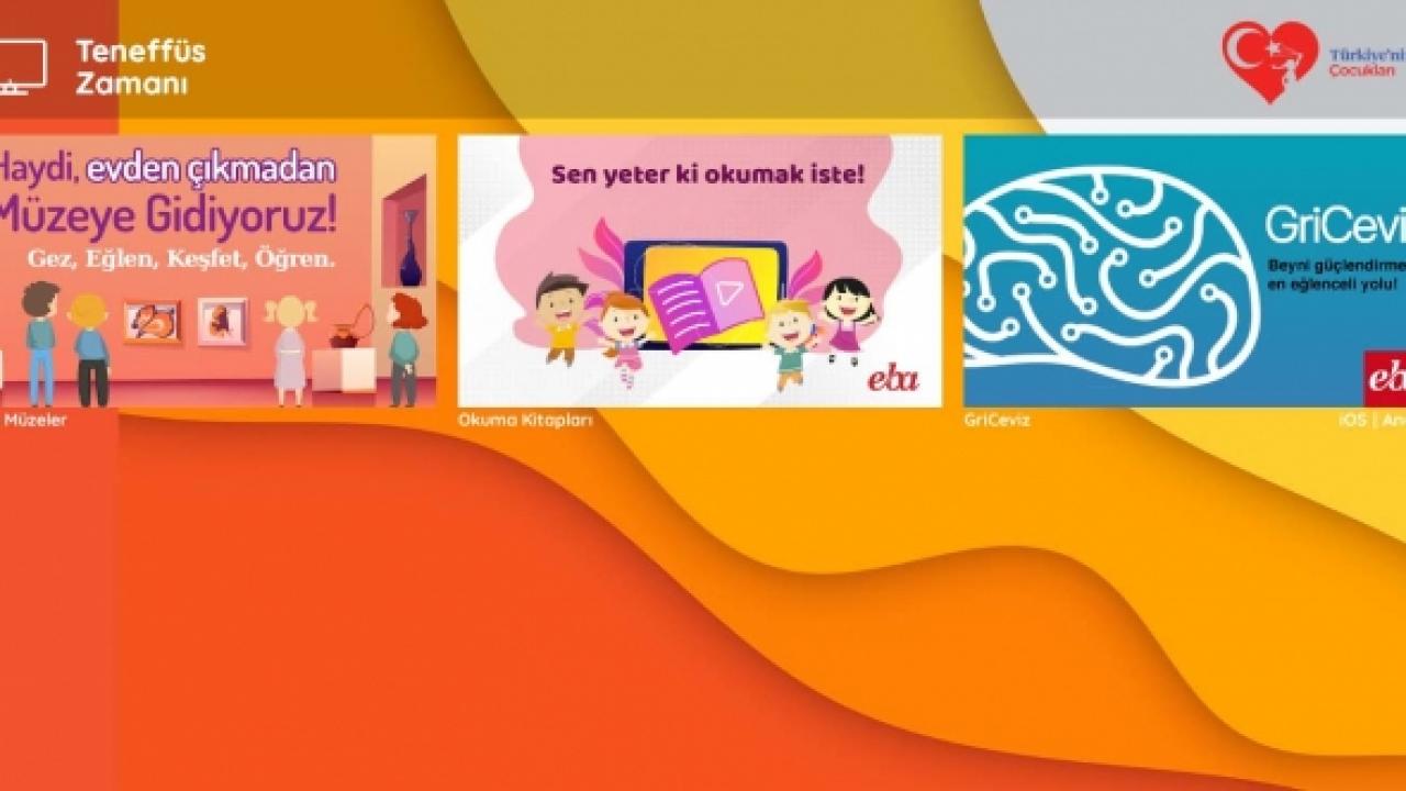 Milli Eğitim Bakanlığı'nca 23 Mart'tan bu yana öğrenci, öğretmen ve velilerin uzaktan eğitim adresi olan Eğitim Bilişim Ağı'nın (EBA) dersler, sınava hazırlık gibi içeriklerine 'teneffüs zamanı' da eklendiği açıklandı. 'Teneffüs zamanı'nda oyunlar, geziler ve okuma kitaplığının bulunduğu belirtildi