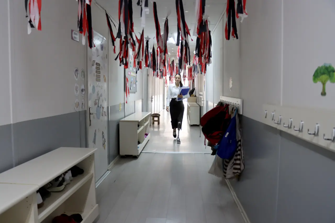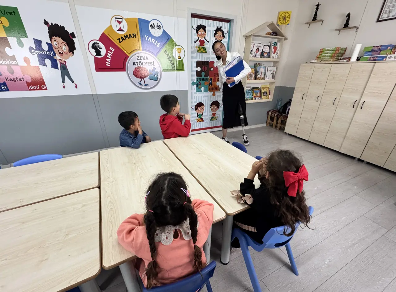 Hatay’da 6 Şubat 2023’te meydana gelen depremde yıkılan binanın enkazından 46 saat sonra yaralı olarak kurtarılan ve sol bacağına protez takılan 27 yaşındaki okul öncesi öğretmeni Sena Alkan, bu yıl göreve başladığı İpek Anaokulu’nda öğrencileriyle ilk Öğretmenler Günü’nü kutladı.