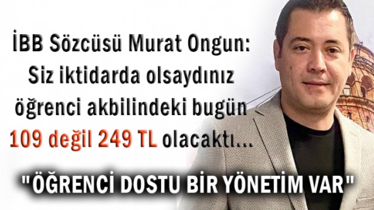 Göksu'ya İBB Sözcüsü Murat Ongun'dan yanıt gecikmedi. Geçmiş dönemlerdeki öğrenci abonmanı ücretinin dolar karşılığının ne kadar olduğunu hatırlatan Ongun, İBB'nin AK Parti yönetiminde kalması durumunda öğrenci abonman ücretinin bugün 249 TL olacağını ifade etti.