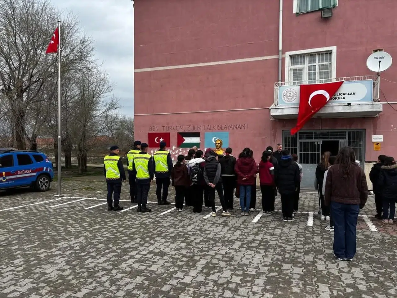 Sevgi, Hoşgörü ve Empati temasıyla yürütülen etkinlikler çerçevesinde okula gelen jandarma personeli, öğrencilerle bir araya gelerek ilk gün heyecanını paylaştı. İstiklal Marşı töreninde minik öğrencilerle yan yana duran ekipler, daha sonra sınıfları gezerek çocuklarla keyifli bir sohbet gerçekleştirdi. Jandarma personelinin bu ziyareti, öğrencilerin okula uyum sürecine büyük moral desteği sağladı.