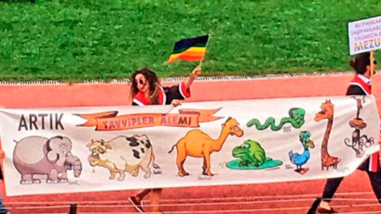 "ODTÜ’de yapılan mezuniyet töreni sırasında cumhurbaşkanına hakaret içeren pankartı taşıyan kişiler hakkında Ankara Cumhuriyet Başsavcılığı tarafından Cumhurbaşkanına hakaret suçundan soruşturma başlatılmış ve üç kişi gözaltına alınmıştır."