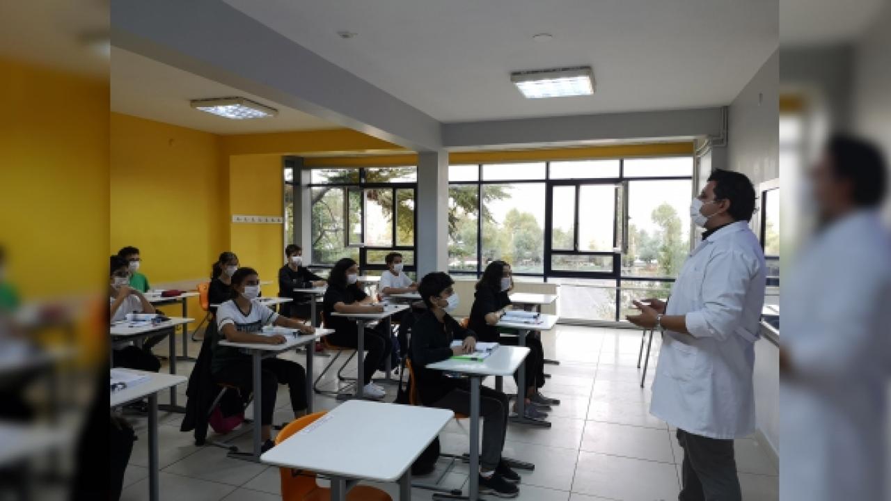 Önlemlerin öğrenci evinden çıktığı anda başlayacağına dikkat çeken Serkan Çelik, “Servis kullanan öğrencilerimizin servise binmeden önce ateşleri ölçülecek. Öğrencilerimizin servis kullanma sırasına göre oturma planlarını da oluşturduk. Serviste el antiseptiklerimiz de mevcut olacak. Öğrencilerimizi okulun giriş kapısında öğretmenlerimiz karşılayacak ve burada öğrencileri bir maske değişimi bekliyor. Sınıfa her giren öğrencimizin dışarda kullanmış olduğu maske okulda değişecek. Öncelikle tüm sınıflarda el antiseptiği olacak. Öğrencilerimiz çapraz oturma planına göre dersliklerde olacak. Her öğrencimizin masası ise kendine özel olacak yani öğrenci her gün aynı sırada ders dinleyecek. Tüm masa ve sandalyelerde öğrencilerimizin isimleri yer alacak. Teneffüsler ise öğretmenlerimiz eşliğinde gerçekleştirilecek. Öğrenciler sınıf sınıf teneffüs alanlarına çıkacak. Yemekhane kullanımı yine öğretmenlerimiz eşliğinde sınıflar halinde kullanılacak. Her sınıfın ve öğrencinin oturacağı alanlar burada da belirlendi. Yemekhanede de kişisel hijyen kurallarına uygun şekilde hareket edilecek” ifadelerini kullandı. DHA