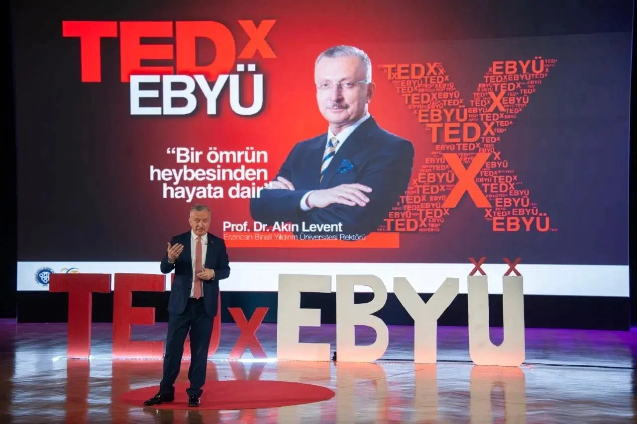 Erzincan Binali Yıldırım Üniversitesi’nde düzenlenen TEDx etkinliğinde kürsüye çıkan Rektör Prof. Dr. Akın Levent, gençlere içsel yolculuk ve azim vurgusu yaparak başarıya giden kapıları araladı.