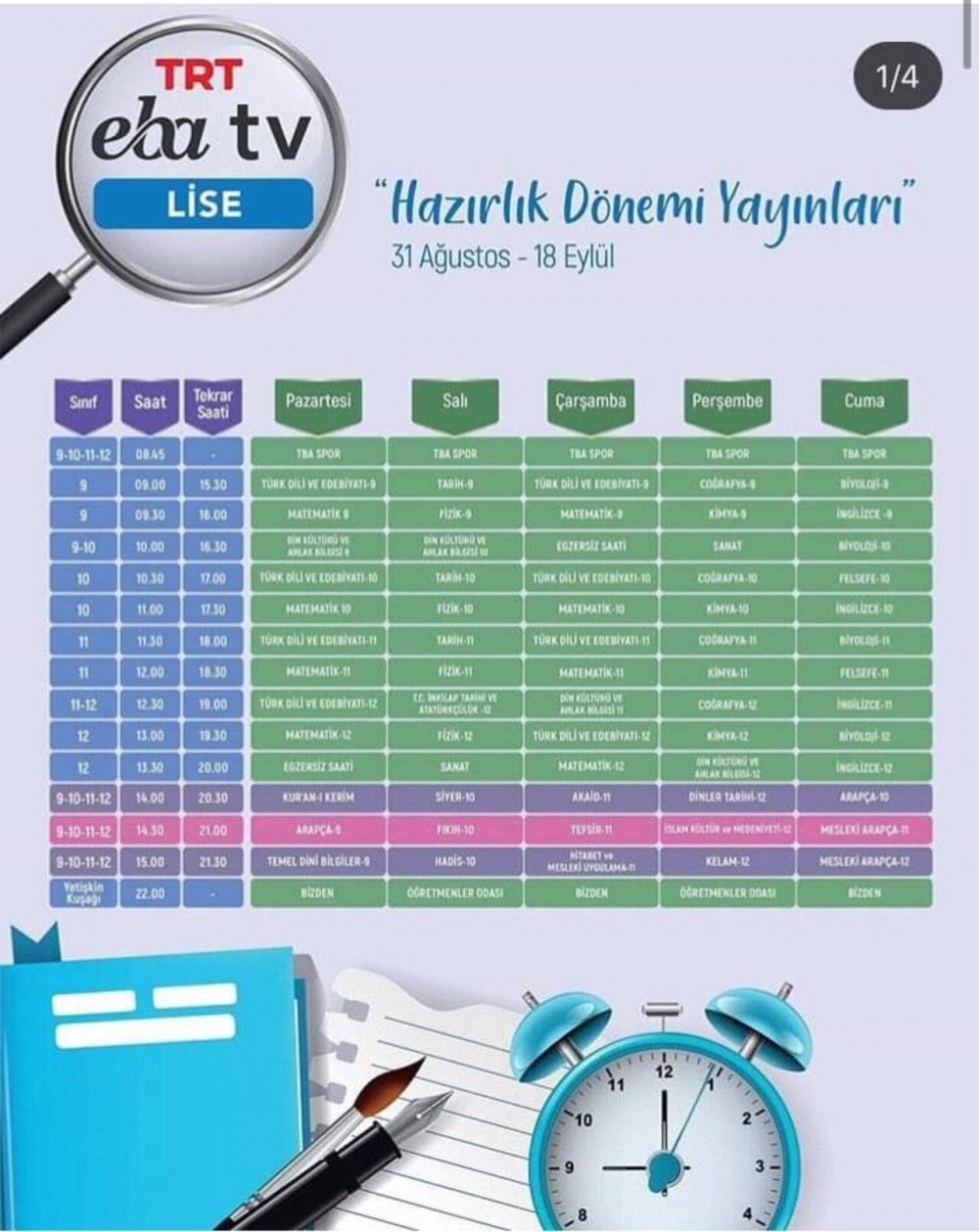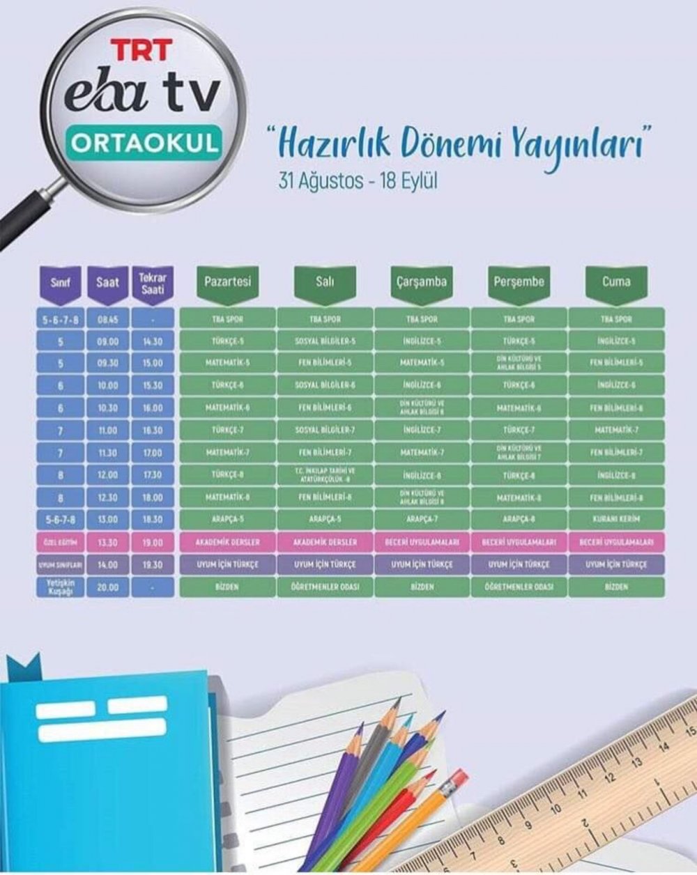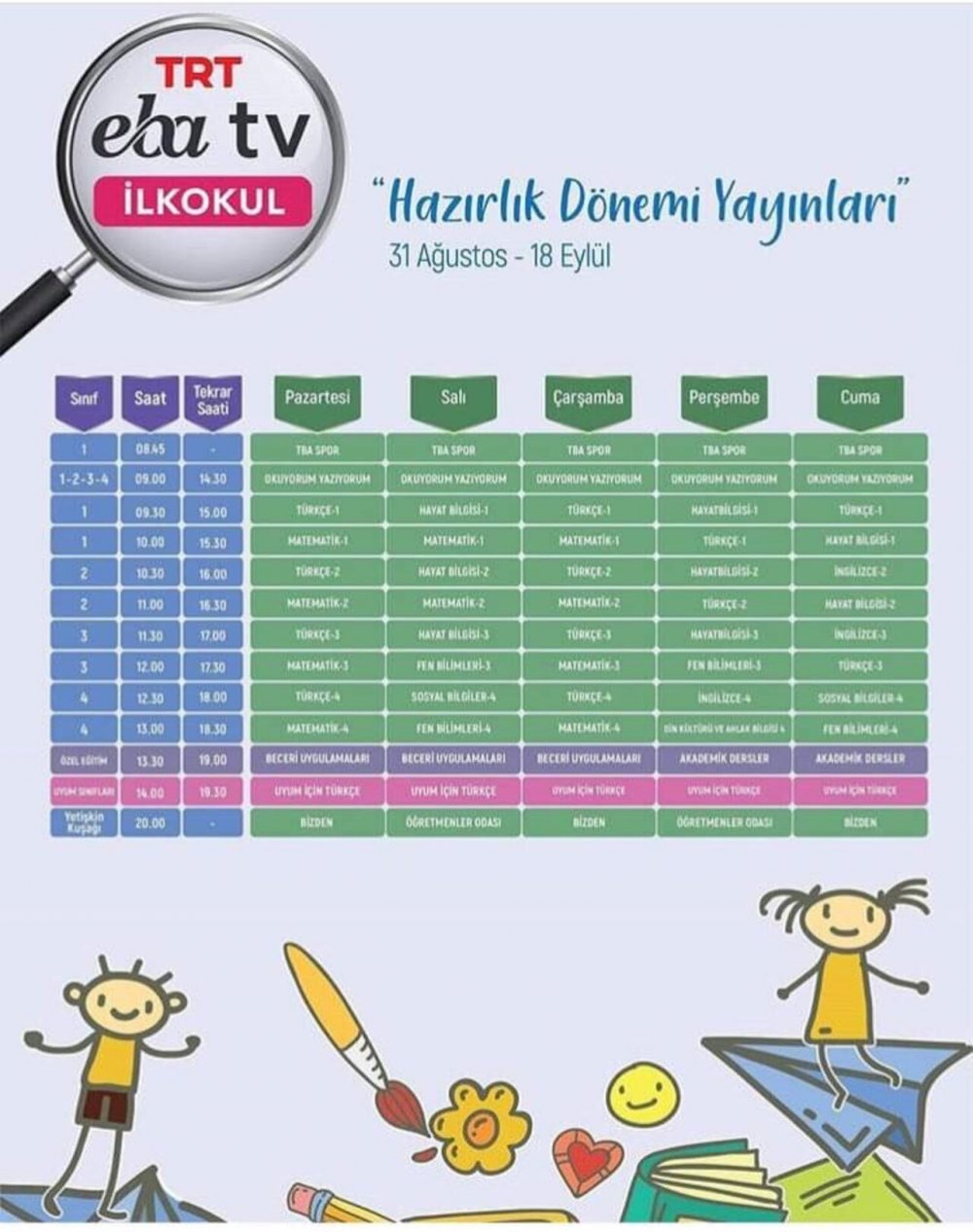 Bu kapsamda bakanlık tarafından EBA TV ilkokul , TRT EBA TV ortaokul, TRT EBA TV lise kanallarının 31 Ağustos - 18 Eylül tarihleri arasında yayın akışı yayımlandı.