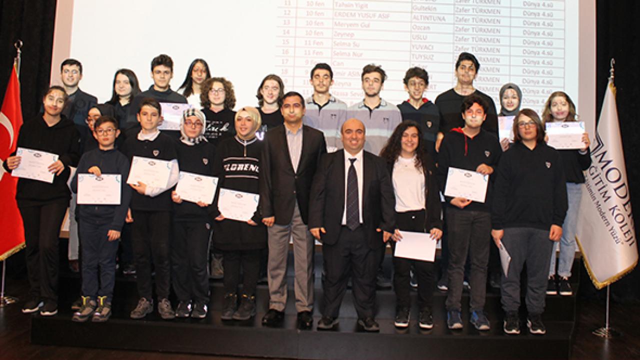 Modern Eğitim Kurumları TEKNOFEST'te de insanlık yararına teknoloji alanında 240, sağlık kategorisinde liseler arasında ise 280 proje arasından Türkiye birincisi oldu. Takımının başında olan danışman öğretmen Zafer Türkmen ile öğrenciler Semih Apaydın ve İbrahim Yahya Gürdal'a ödülleri takdim edildi. Modern Eğitim Kurumları 2020-2021 Bursluluk ve Okula Kabul Sınavında dereceye giren öğrencilerine de ödülleri verildi. Modern Eğitim Kurumları, 11-12 Ocak 2020 tarihlerinde 2 bin 650 başvuru ile gerçekleştirilen bursluluk sınavında her kademeden ilk 10'a giren öğrencilere çeşitli oranlarda eğitim bursları da takdim edildi.