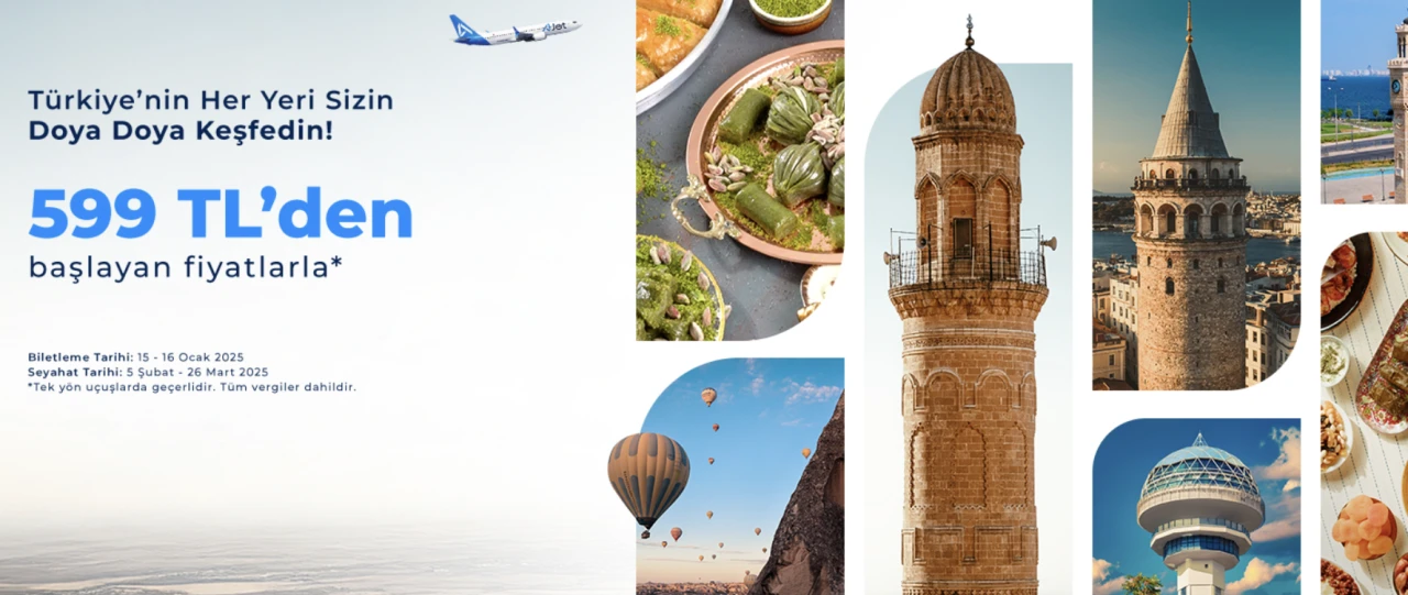 15-16 Ocak'ta vergi ve harçlar dahil 599 liradan başlayan fiyatlarla satışa sunulan biletler sadece "AJet.com ve AJet mobil" uygulamasından alınabilecek.