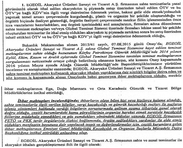 Cumhuriyet tarihinin en büyük kaçakçılık olayında, bu yazımızda daha çok belgeleri konuşturacağım. Sevgili okurlarım biliyorsunuz, 23 Ekim 2017 tarihi itibariyle 'İşte Global Teminat Vurgunu' başlığı altında soruşturmanın ana hedeflerinden olan EGEOİL firmasının Samsun Gümrük Müdürlüğü ile Aliağa Gümrük Müdürlüğünde Global Teminat Sistemi üzerinden tüm yasaları, yönetmelikleri çooook saygıdeğer görevlilerin uyku modunda olduğu, tammmmm 325 milyonu (yanlış yazmadım tam altı sıfırı var) nasıl cebe indirdiklerini ya da yüce devletimi nasıl soyduklarını ve ne yazıktır ki soyduran yöneticilerin denetimi altındaki müfettişleri hazırladıkları raporlardan aktardım. Peki, tüm bu raporların sonuç bölümünde soyduran bazı yöneticilerin denetimi altındaki müfettişler ne kanaate varmış. Yani sonuç olarak ne demiş. Müfettişlerin raporları doğrultusunda Yüce Türk Adaleti neler yapmış? Hadi ben sabırsızlanıyorum. Buyurun başlayalım...