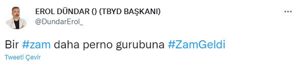 Dündar sosyal medyadan yaptığı paylaşımda "Bir zam da pernod içki grubuna" ifadelerini kullandı.