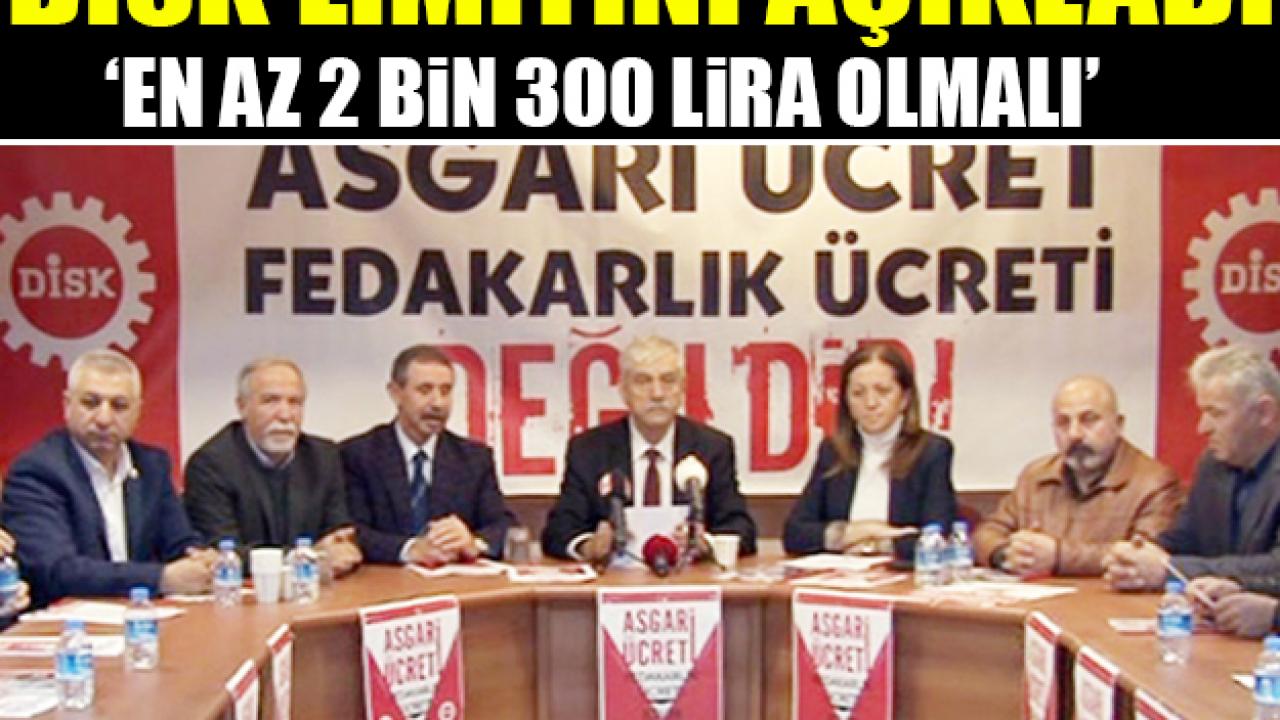DİSK Genel Başkanı Kani Beko, düzenlediği basın toplantısıyla 2018 yılı asgari ücretiyle ilgili DİSK'in taleplerini net 2 bin 300 lira olarak açıkladı. Beko, “2017 yılında enflasyonun yüzde 12-13 olacağı, büyüme hedefinin yüzde 5, 2018 büyüme hedefinin yüzde 5,5 olduğu dikkate alınarak, enflasyon ve büyüme oranında bir artışla asgari ücretin net 2 bin 300 Lira olması gerekir” dedi