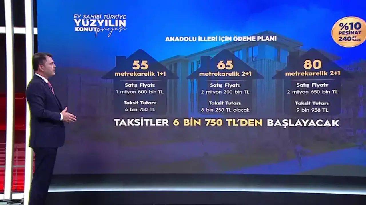 CNN Türk canlı yayınında konuşan Çevre, Şehircilik ve İklim Değişikliği Bakanı Murat Kurum, 500 bin sosyal konut projesiyle ilgili detayları paylaştı.