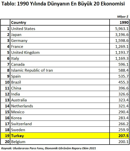 (1) Uluslararası kuruluşların dün yayımlanan tahminlerine göre Türkiye, 2021’de dünyanın en büyük 20 ekonomisi liginden düşüyor.
