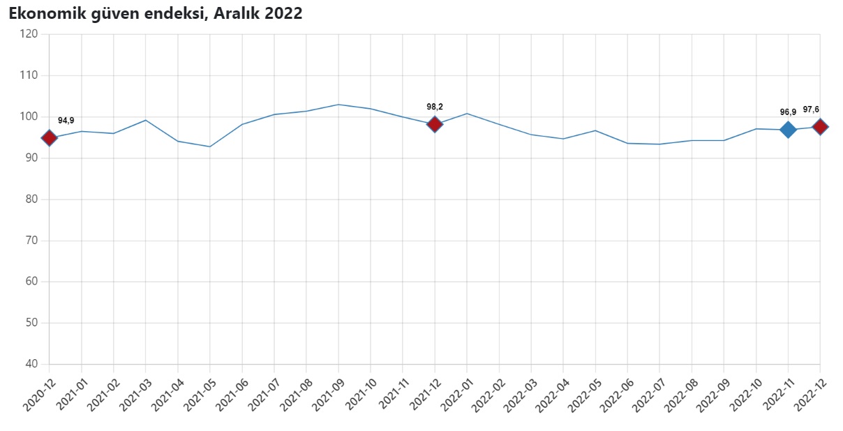 Ekonomik güven endeksi, güven endeksleri ve değişim oranları, Aralık 2022