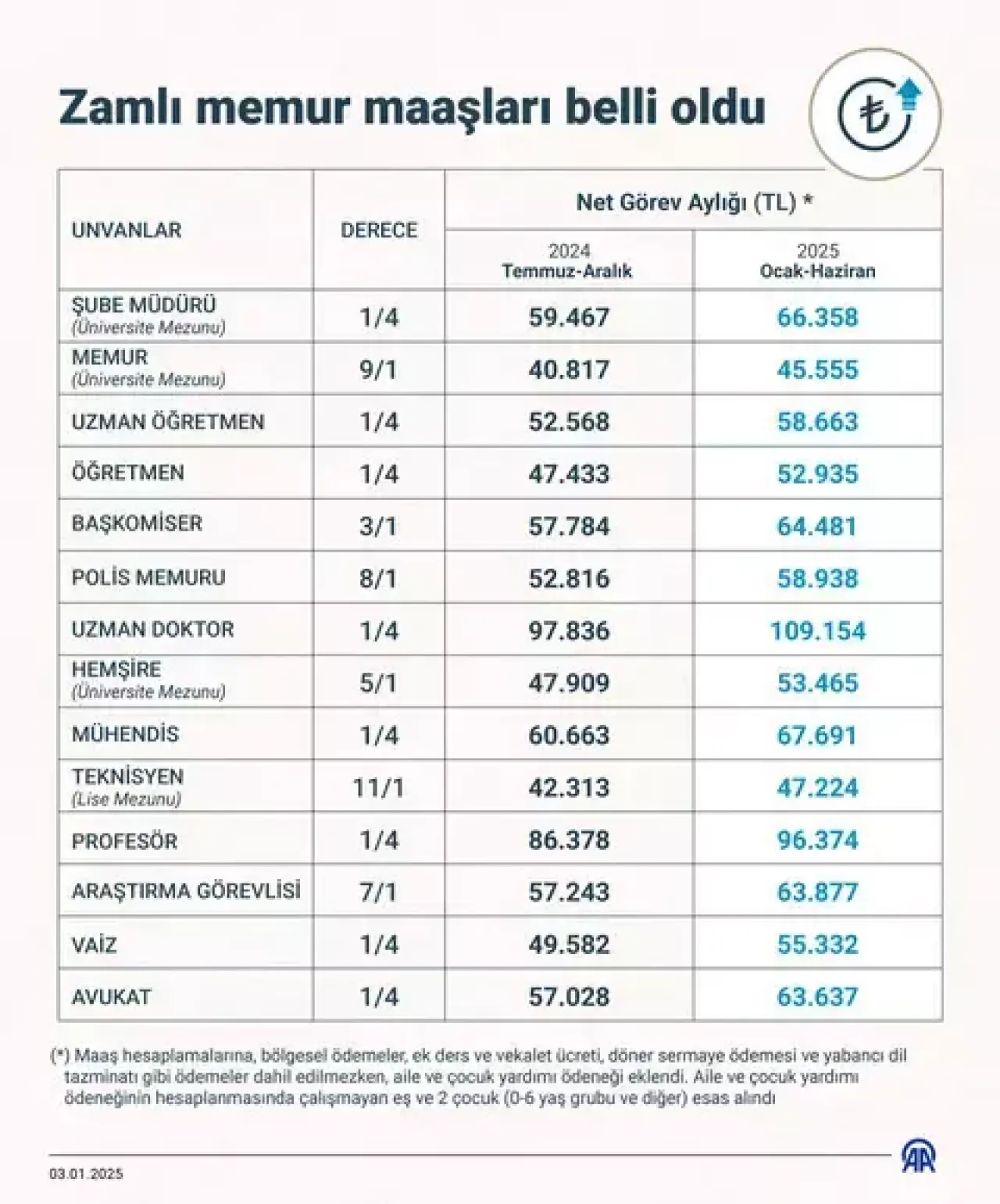 Memur ve emeklinin beklediği haber bugün geldi. TÜİK, 2024 yılı enflasyon oranlarını açıkladı. Açıklanan oranlara göre hangi memur ne kadar alacak? İşte yeni maaşlar…