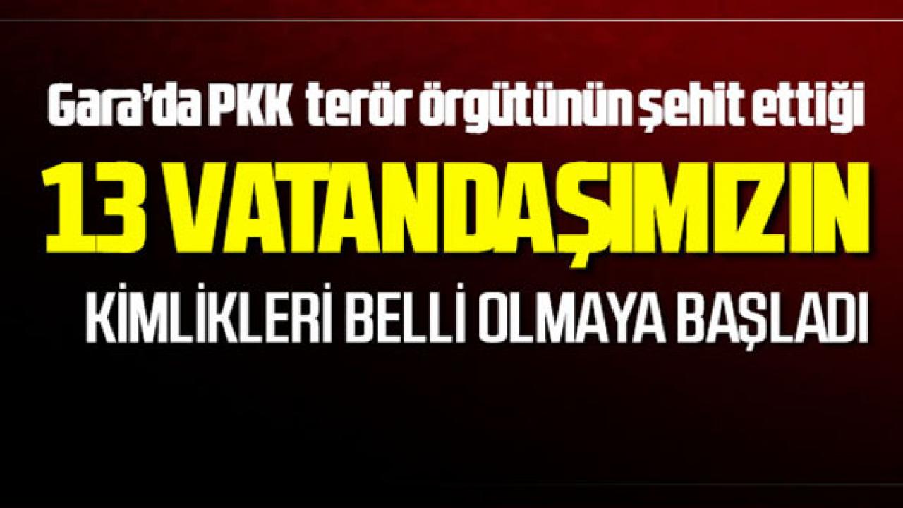 Öte yandan, kimliği belirlenen 11 kişiden, 2'si memleketlerine gönderildi. Aileleri tarafından alınan Şehit Uzman Çavuş Hüseyin Sarı memleketi Kahramanmaraş'a, Aydın Köse ise memleketi Adıyaman'a uğurlandı. Şehit edilen 13 kişiden, 2'sinin kimlik tespiti ise sürüyor.