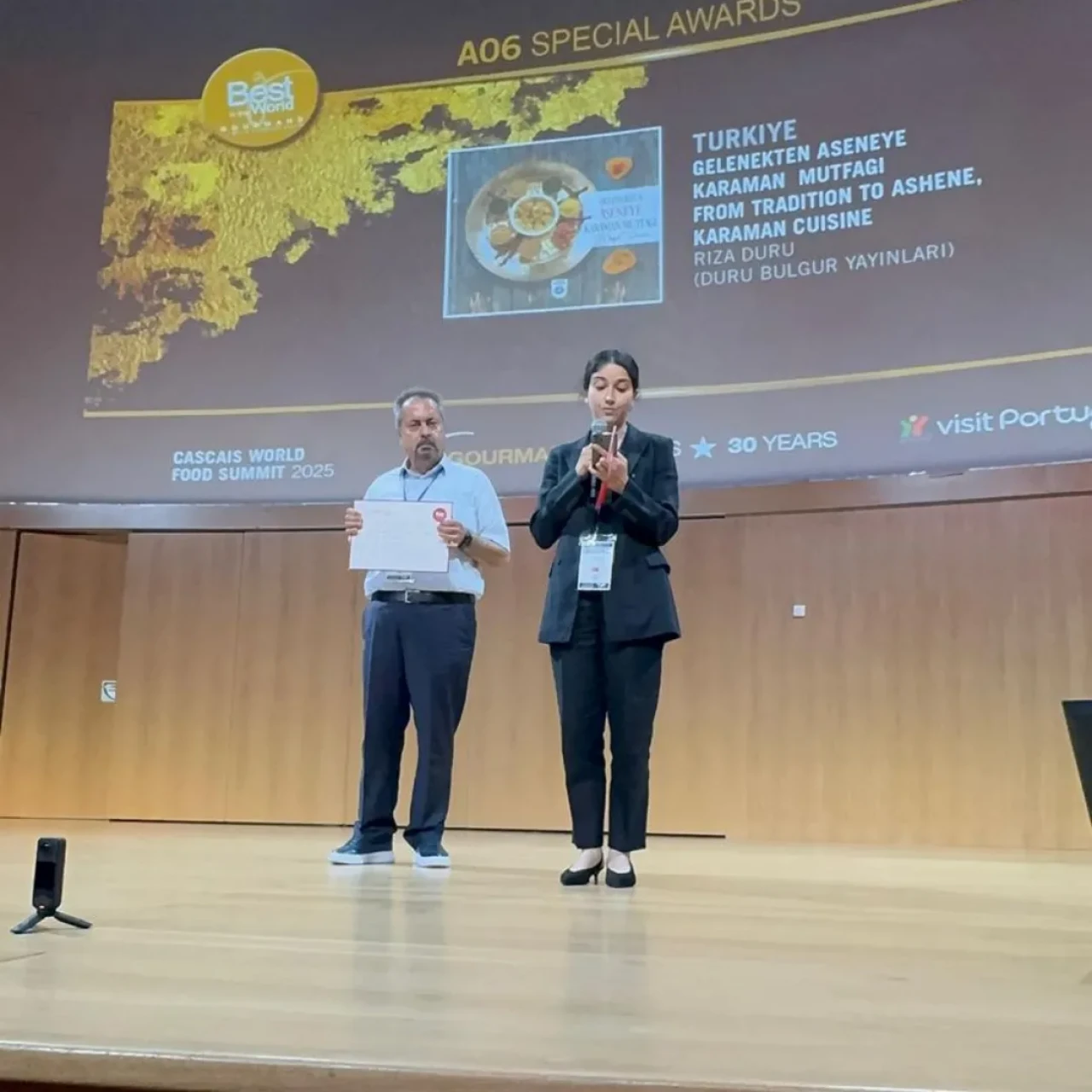 Karaman’ın zengin mutfak kültürünü gün yüzüne çıkaran, geçmişin izlerini geleceğe taşıyan önemli bir kültür hazinesi daha uluslararası çapta tescillendi. Duru Bulgur Yayınları tarafından yayımlanan “Gelenekten Aşeneye Karaman Mutfağı” kitabı, dünyanın dört bir yanından gastronomi uzmanlarının buluştuğu Portekiz’in Cascais kentinde düzenlenen Gourmand Awards 2025’te Avrupa Jüri Özel Ödülü’nü aldı. Bu büyük başarı, Türkiye’nin gastronomi alanındaki yükselişine güçlü bir katkı sunarken, yerli mutfak değerlerinin dünya sahnesindeki gücünü bir kez daha kanıtladı.