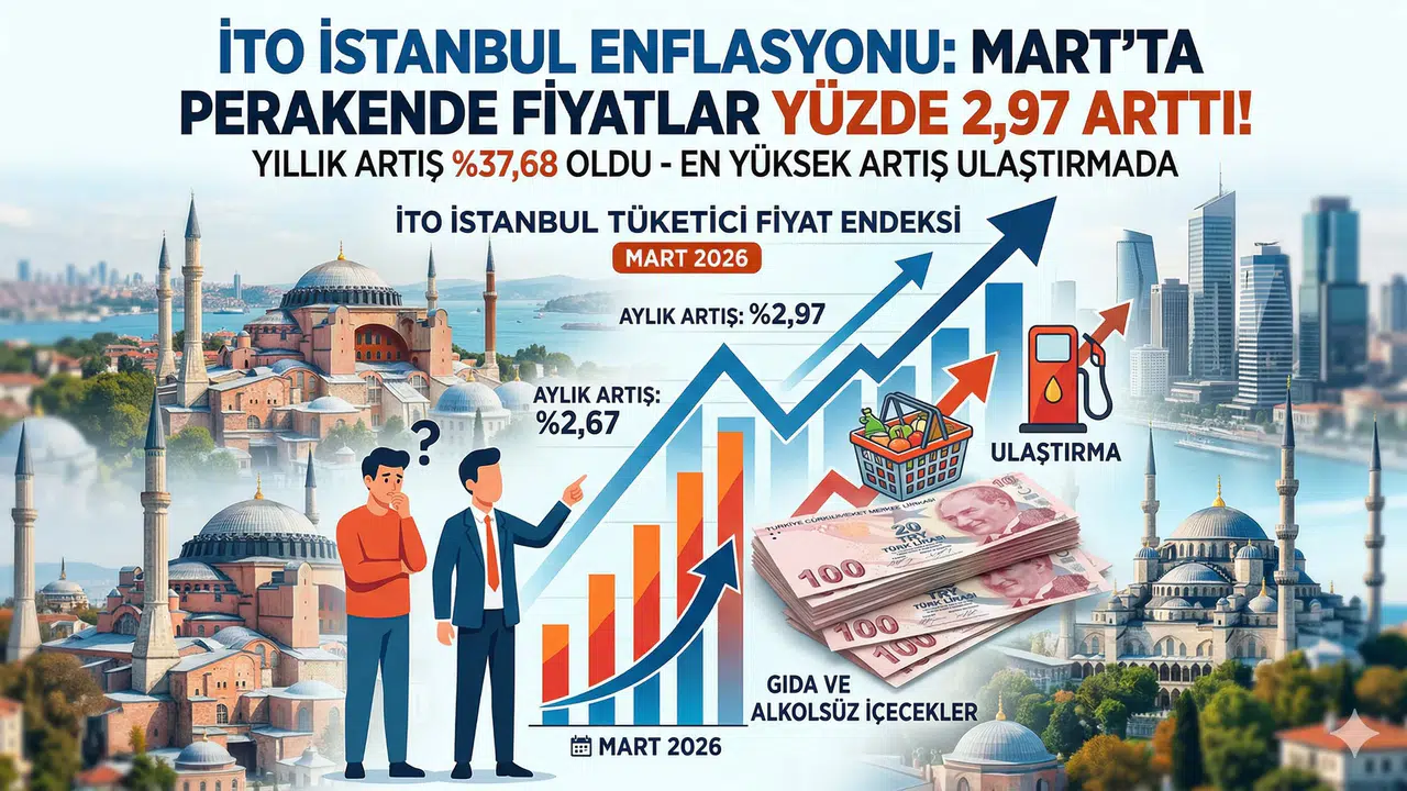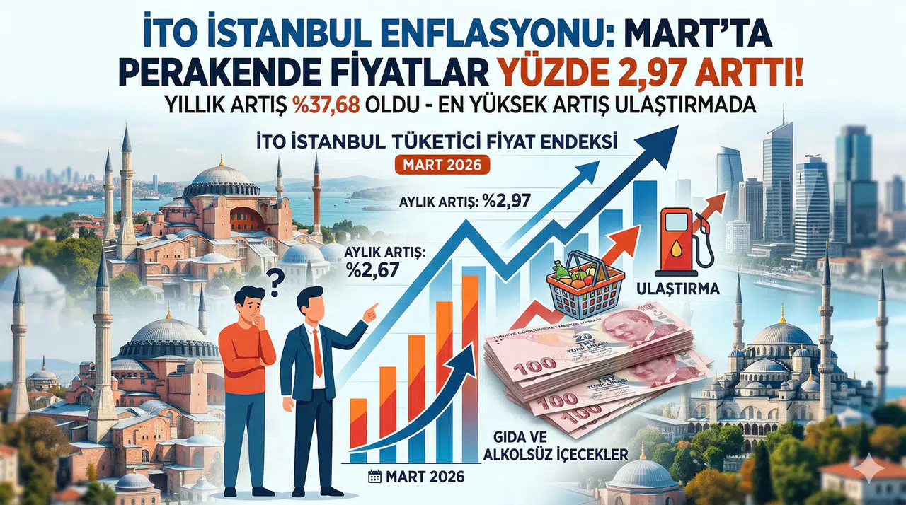 İstanbul Ticaret Odası tarafından açıklanan Mart 2026 verileri, şehirdeki yaşam maliyetinin artmaya devam ettiğini doğruladı. İTO İstanbul Tüketici Fiyat Endeksi, Mart ayında bir önceki aya göre yüzde 2,97 oranında artış kaydetti. Bu aylık yükseliş, yılın ilk çeyreğinde biriken enflasyon baskısının Mart ayında da sürdüğüne işaret ediyor.