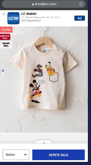 Mağaza zinciri LC Waikiki’nin internet sayfasında, Arapça yazılı bebek tişörtlerinin satışta olması sosyal medyada eleştirilmesine sebep oldu.