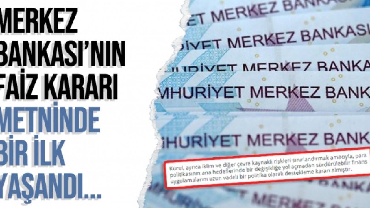 Merkez Bankası’nın şaşırtan faiz indirimi kararından sonra yayımlanan karar metninde bir başka sürpriz ise sürdürülebilir finansın metne girmiş olması.