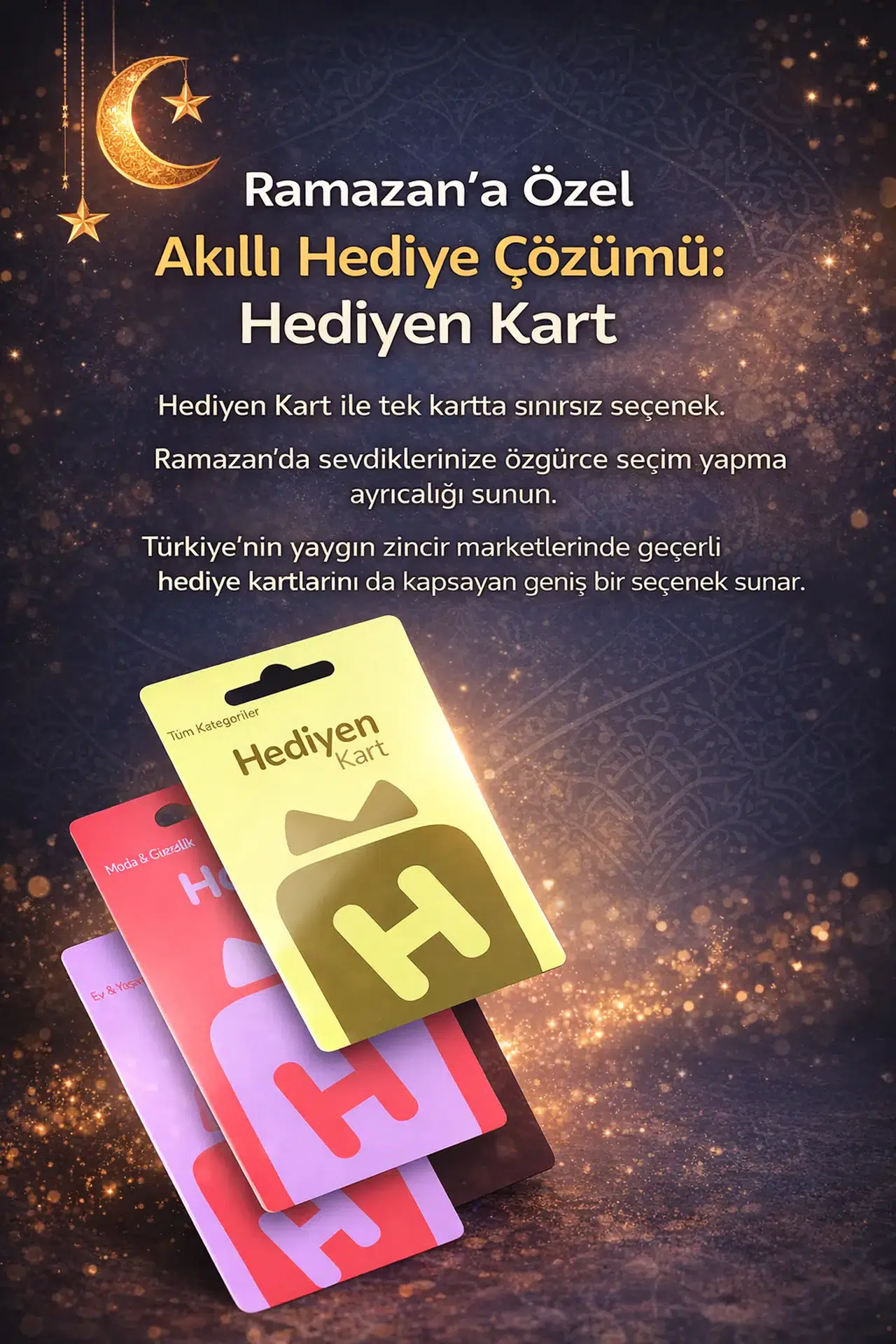 Geniş kullanım ağı, farklı tutar seçenekleri ve dijital gönderim imkânı sayesinde Hediyen Kart, Ramazan döneminde hediyeleşme alışkanlıklarını daha pratik ve erişilebilir hale getiriyor.