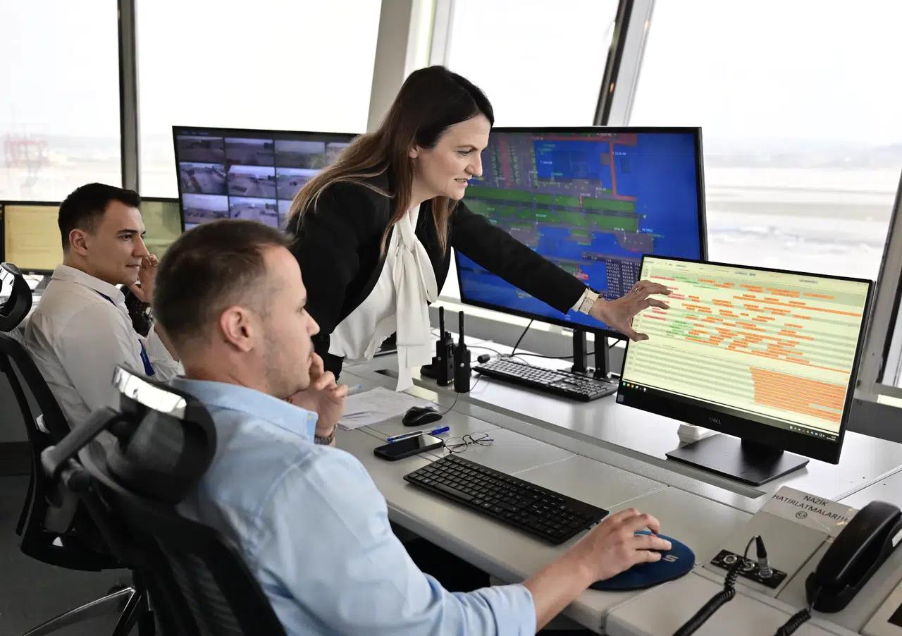 Havalimanındaki yer trafiğini düzenleyen Ramp Kule'de görevli HEAŞ Uçuş Hizmetleri Müdürü Ayşegül Emir Varlıklı ise HUPS sayesinde saniyeler içinde uçakların park pozisyonlarının belirlendiğini anlattı.